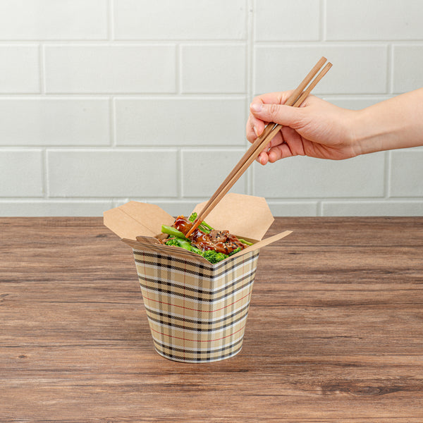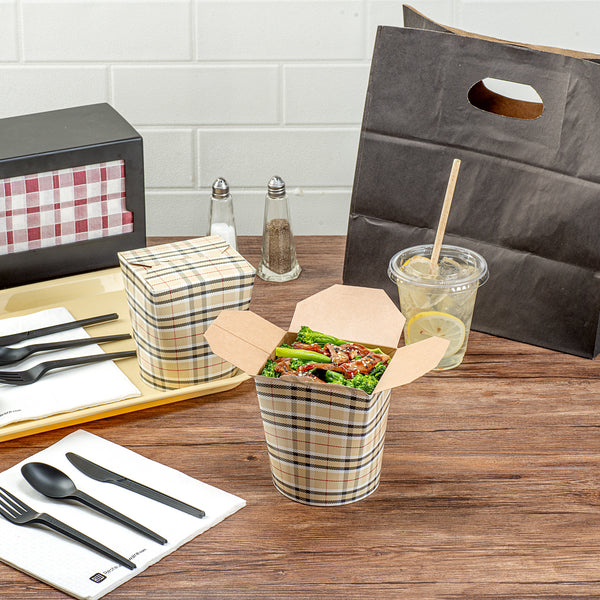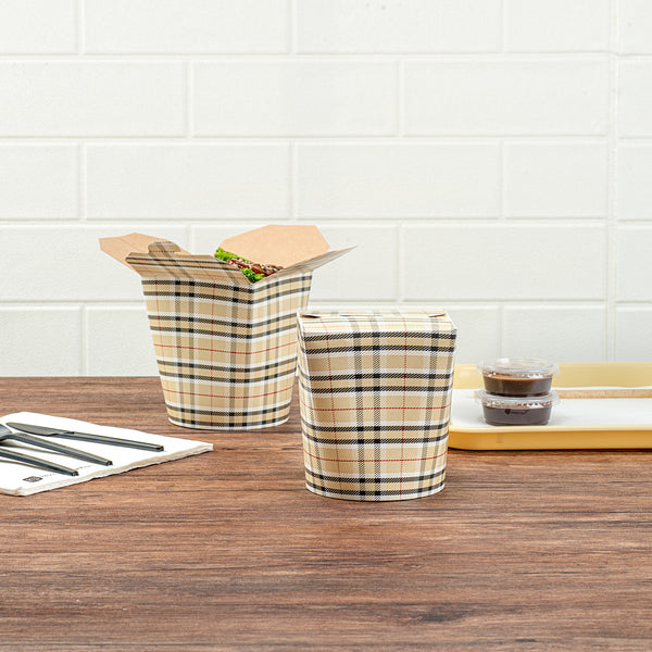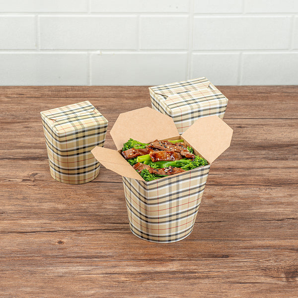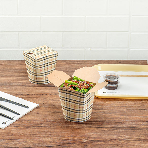 32 OZ ROUND PLAID PAPER NOODLE TAKE OUT CONTAINER