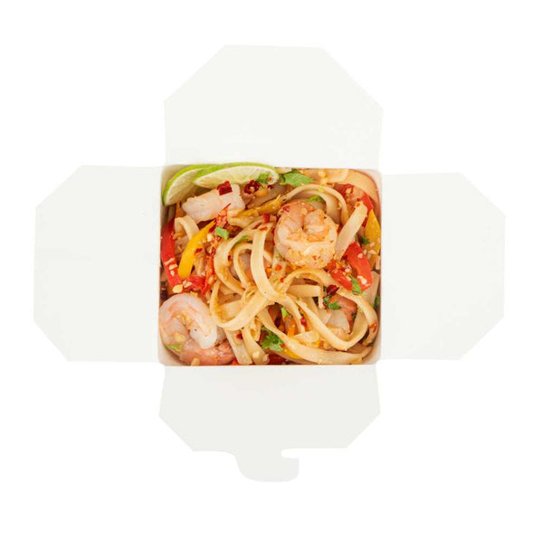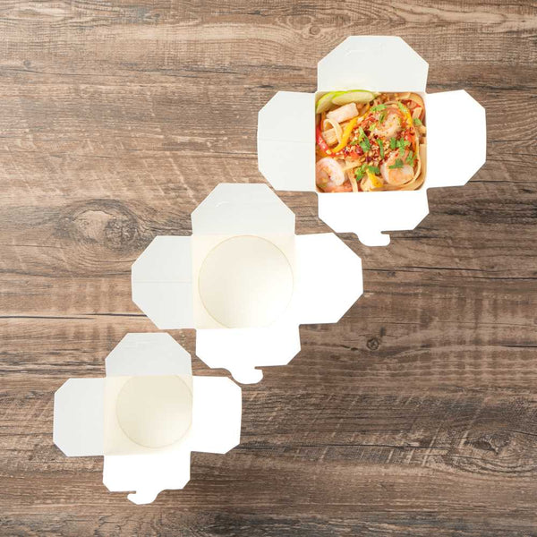 These takeaway boxes are made from thick paper and can easily hold hot and cold foods. Ideal for packing lunches for work!