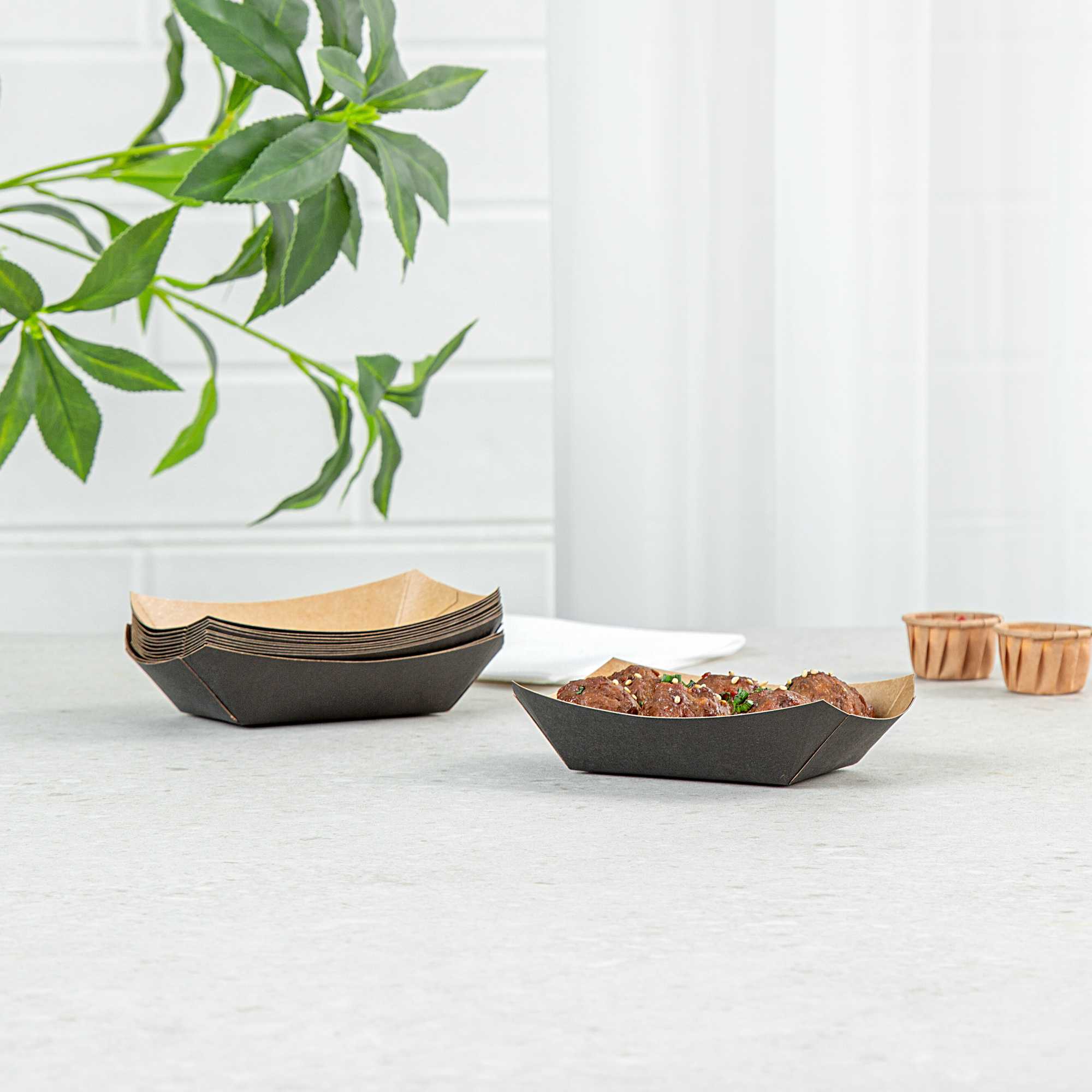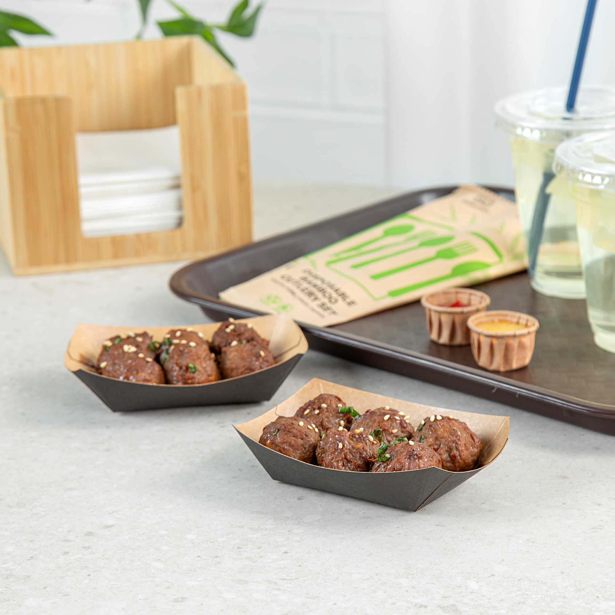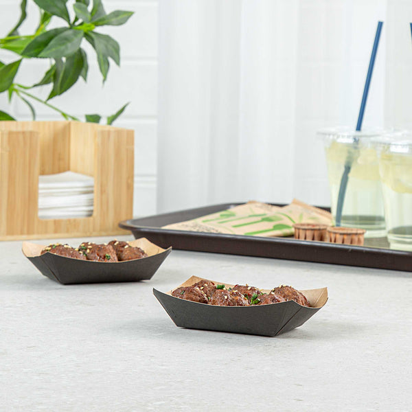 For a simple cleaning process for establishments and guests, these paper food boats are sustainably disposable. Reduce your impact on the environment!