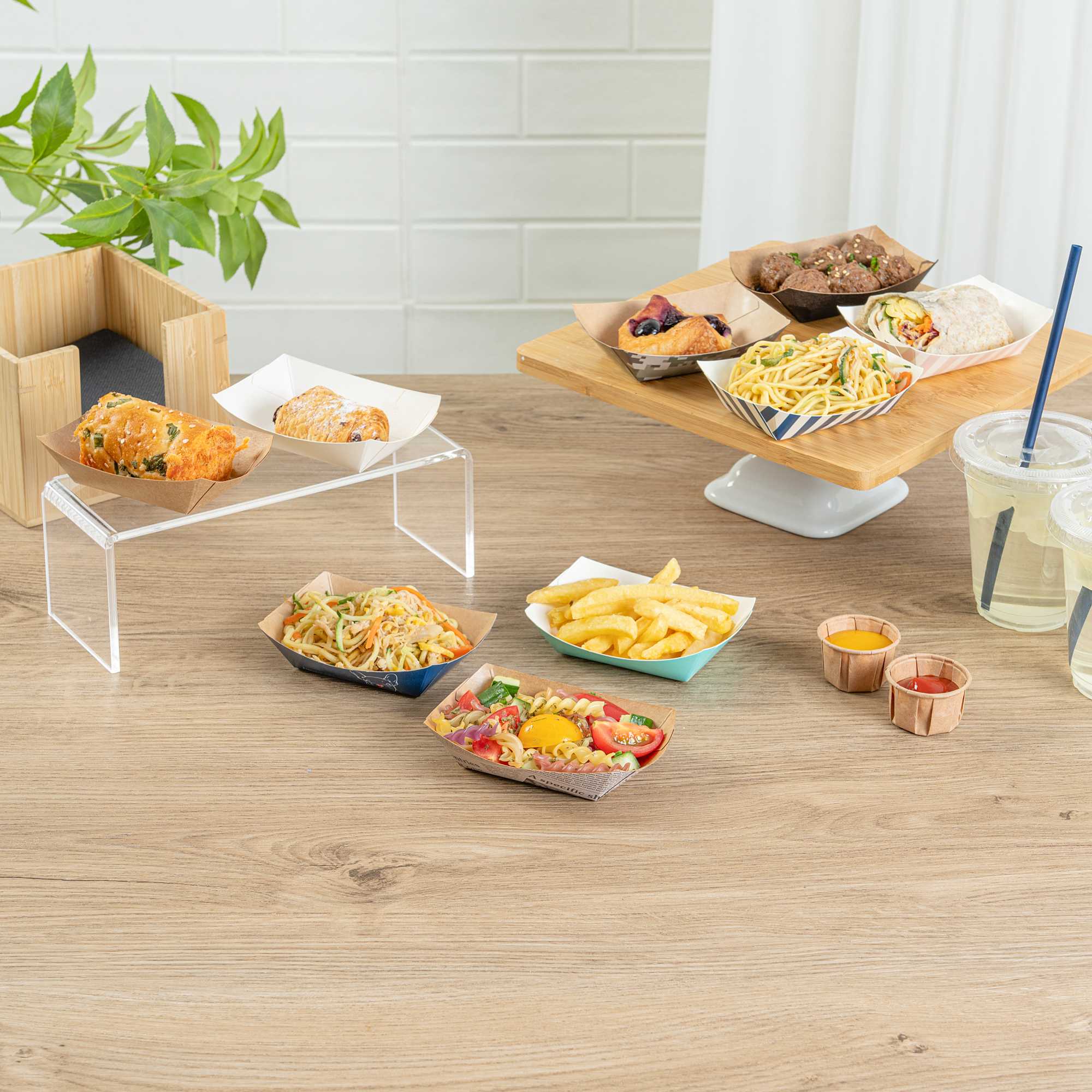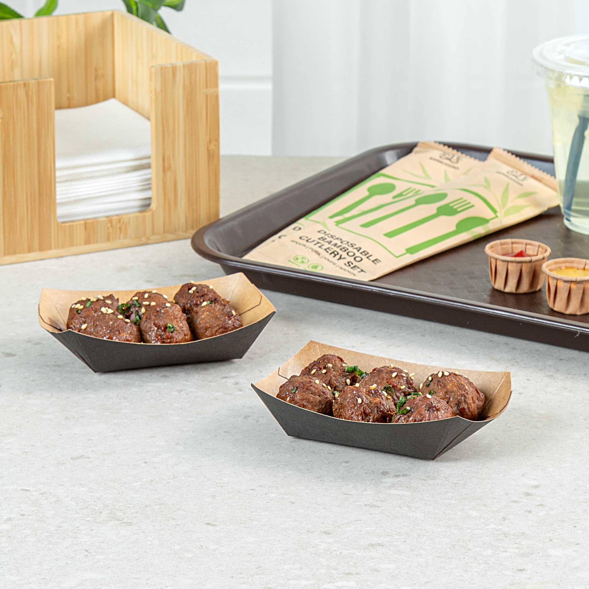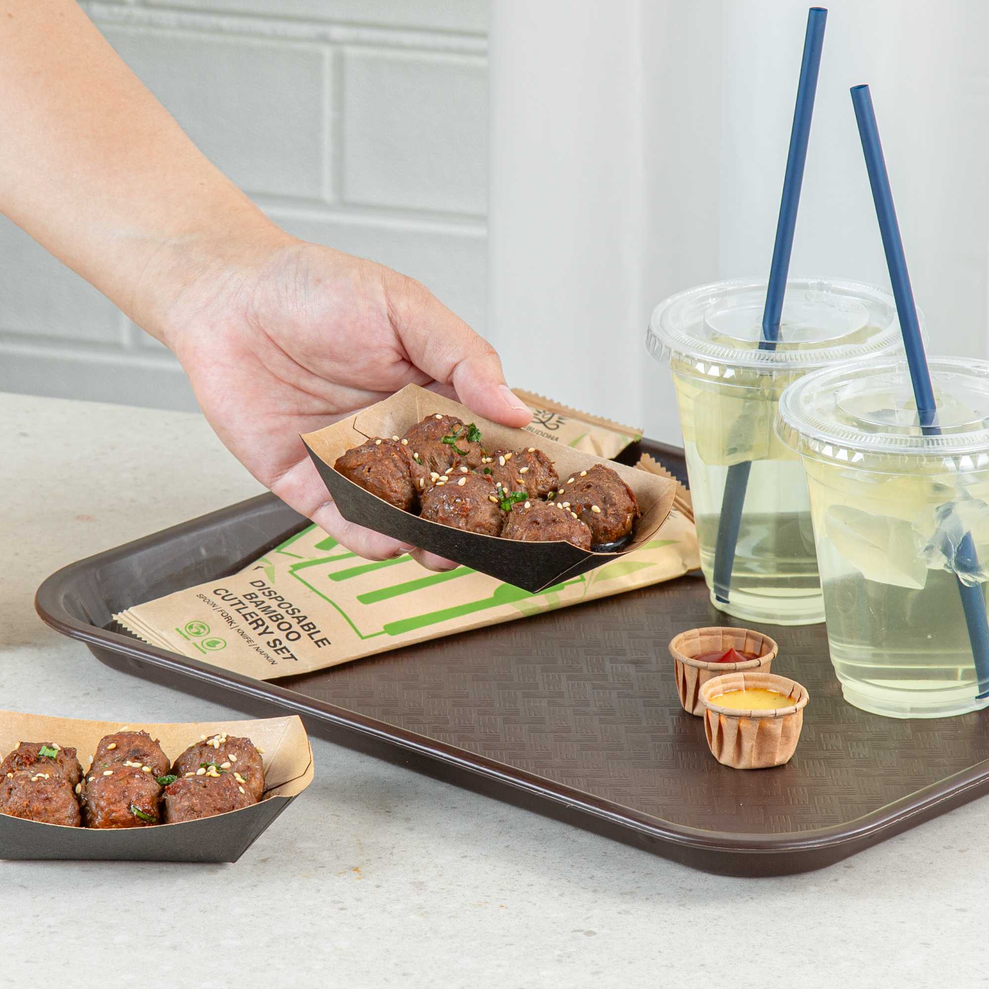 For a simple cleaning process for establishments and guests, these paper food boats are sustainably disposable. Reduce your impact on the environment!