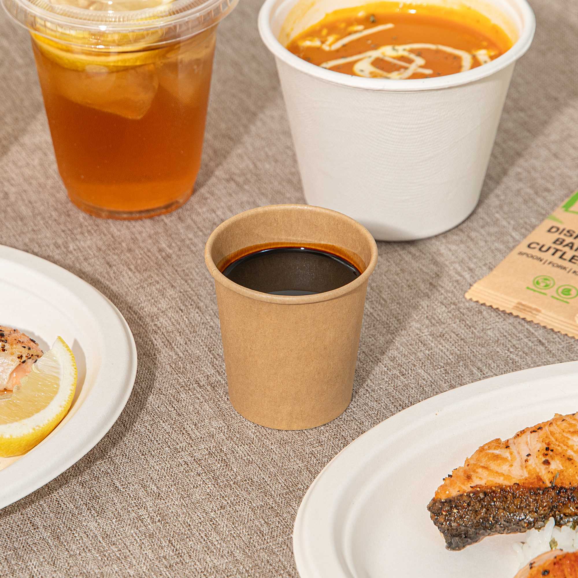 - Sturdy paperboard construction supports sauces and condiments