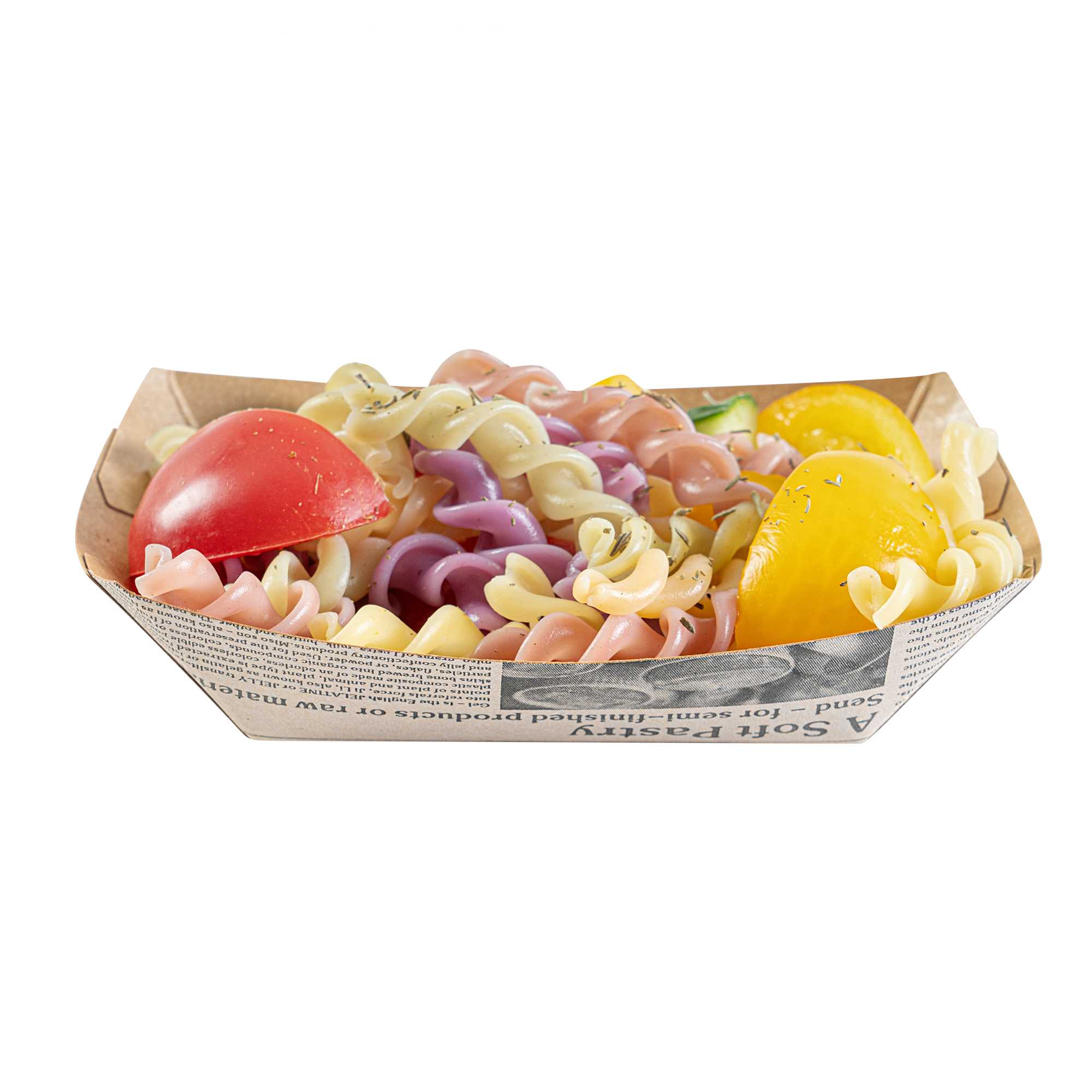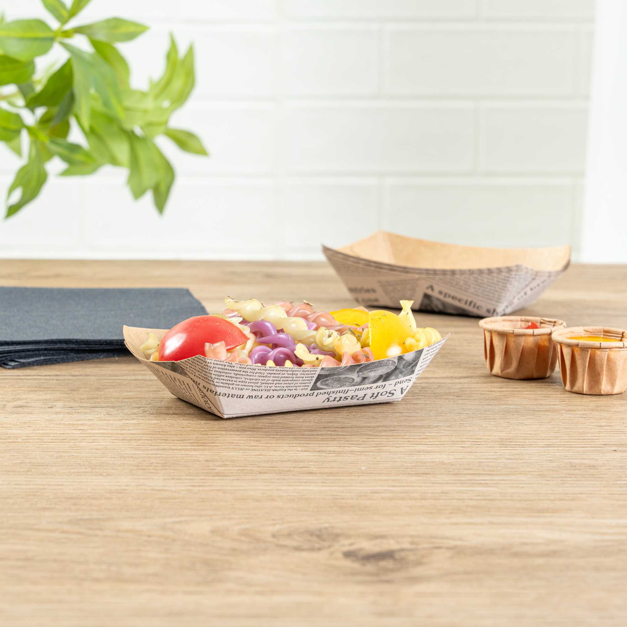 These paper food boat trays have an ultra-portable design to easily serve meals. Ideal for food trucks, family parties, and catering companies!