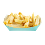 Revolutionize your catering experience with our Bio Tek 4-ounce Turquoise Paper #25 Food Tray / Boats. Manufactured from premium-quality paper, these cardboard snack trays are built with sturdy bases and resilient walls, ensuring an immaculate way to relish side dishes, finger foods, and appetizers while on the move. Utilize these greaseproof paper food trays to easily serve sweet potato fries at your food truck or to present exquisite portions of your trademark appetizers. The elegant turquoise finish adds an enchanting twist, making them a superb choice for weddings, corporate luncheons, cocktail receptions, and other catered occasions. Simplify the task of cleaning up after events with these disposable paper food boats. These small food boats measure 3 inches long by 2 inches wide by 1 inch tall, and these #25 paper food trays hold up to 4 ounces. Sold in a 50 count box.