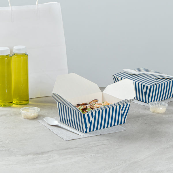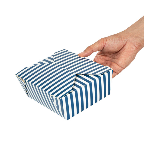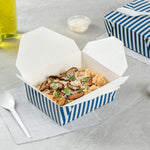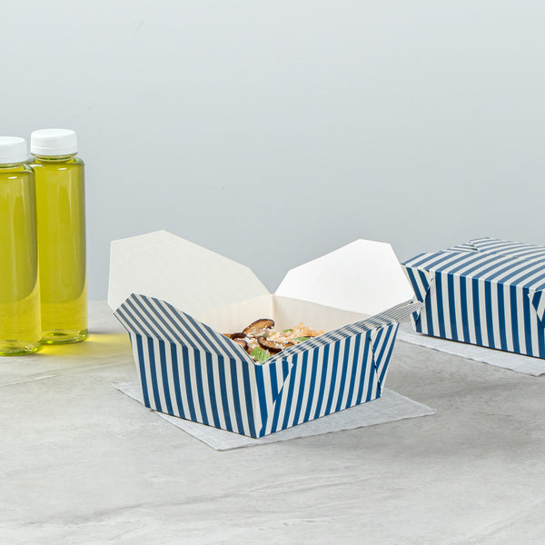 45 OZ BLUE AND WHITE STRIPE PAPER #8 BIO BOX TAKE OUT CONTAINER