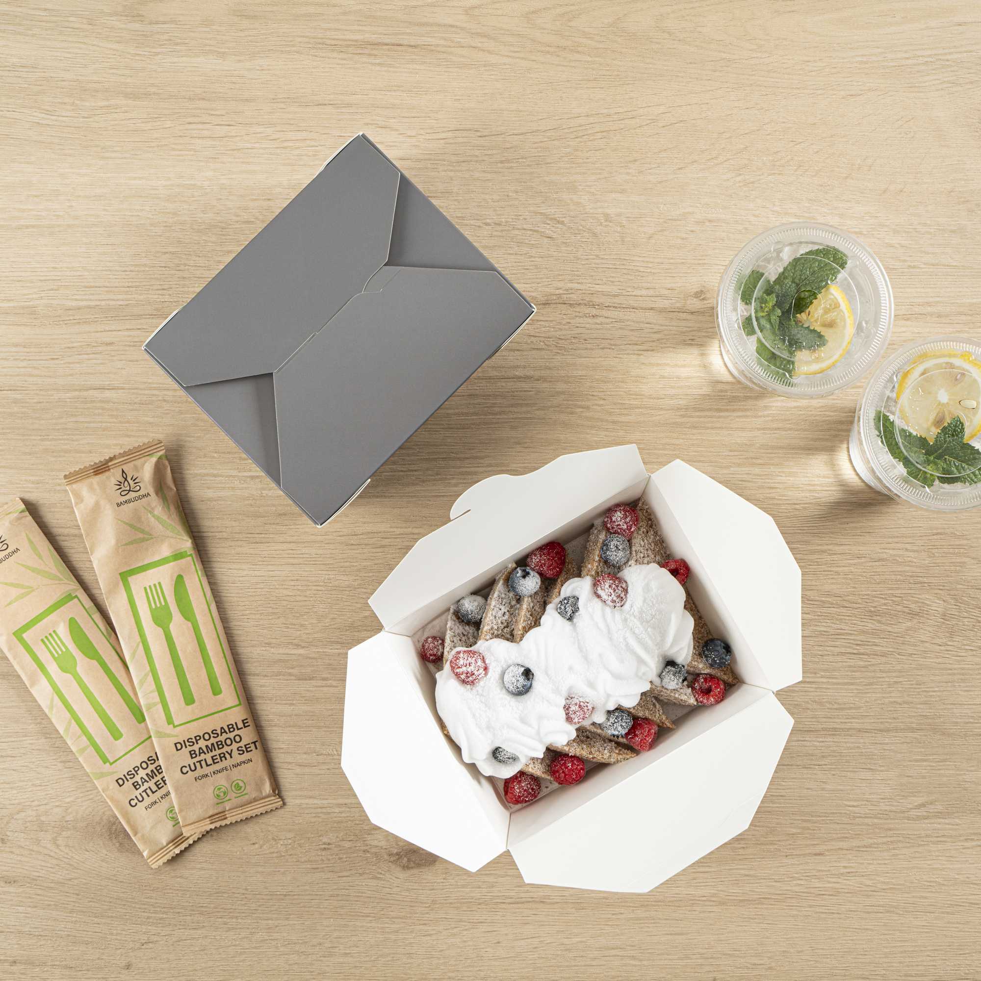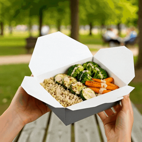 Our food containers are made from recyclable paper to easily dispose of boxes in a nature-friendly way. Don’t worry about washing dirty containers!