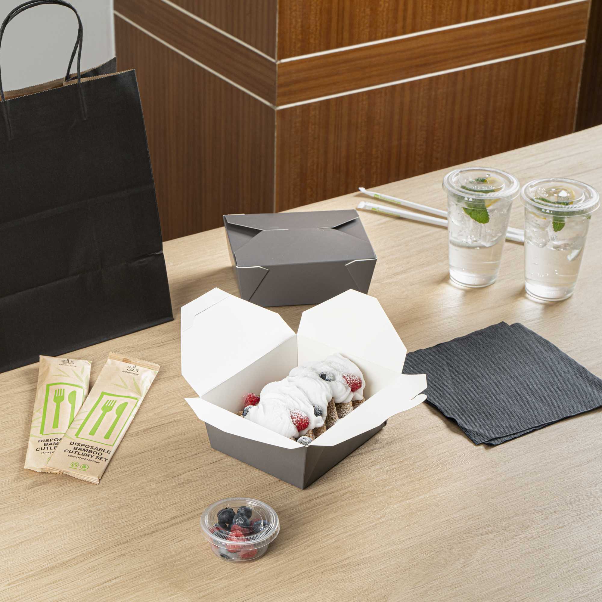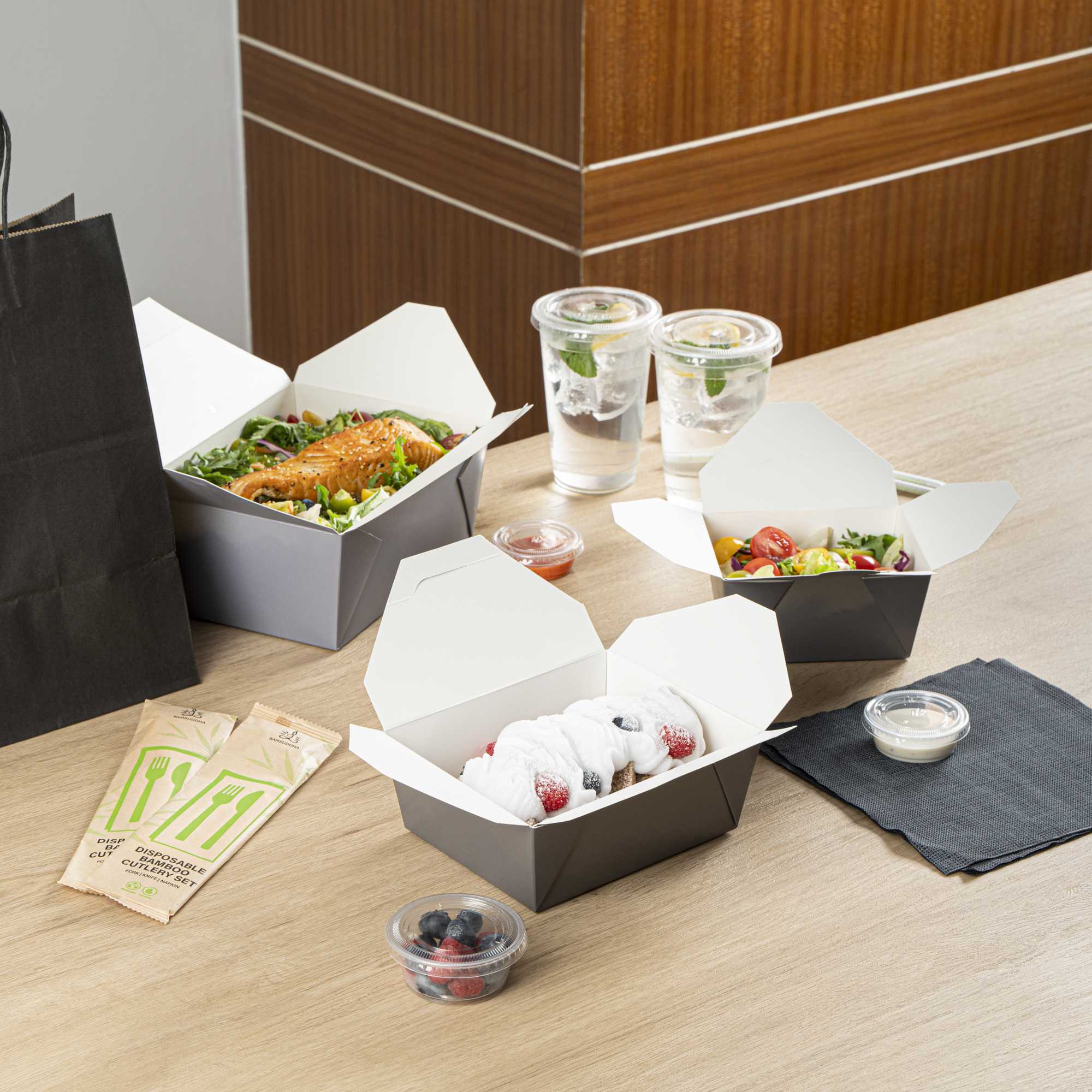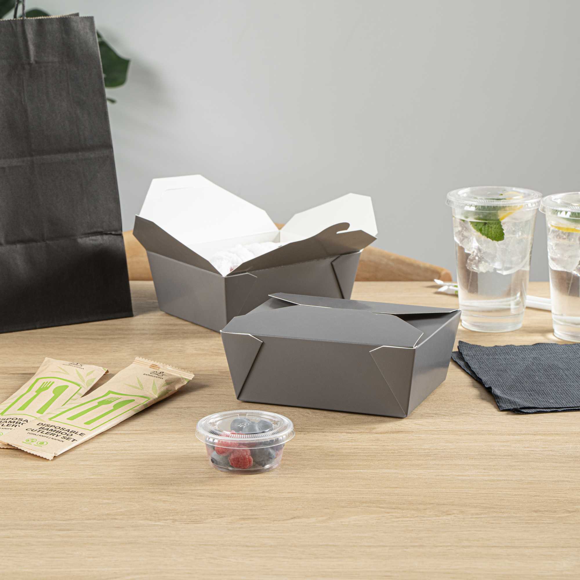 No matter the size of your dish, our disposable food boxes are available in different capacities to accommodate any meal. Choose from our soup, noodle, salad, or rectangle containers to easily pack and take food anywhere.