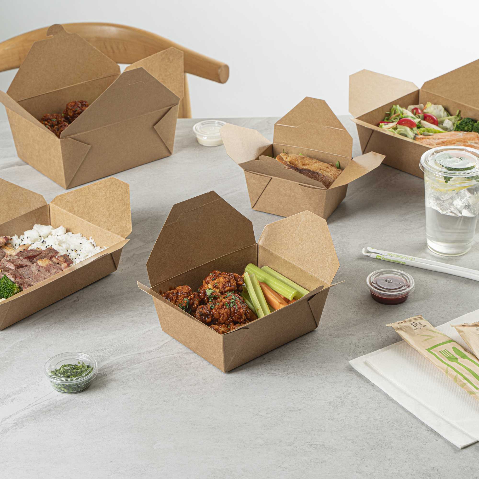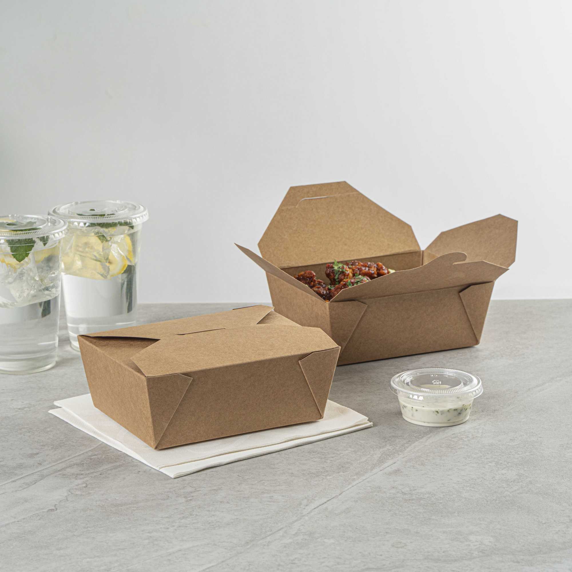 No matter the size of your dish, our disposable food boxes are available in different capacities to accommodate any meal. Choose from our soup, noodle, salad, or rectangle containers to easily pack and take food anywhere.