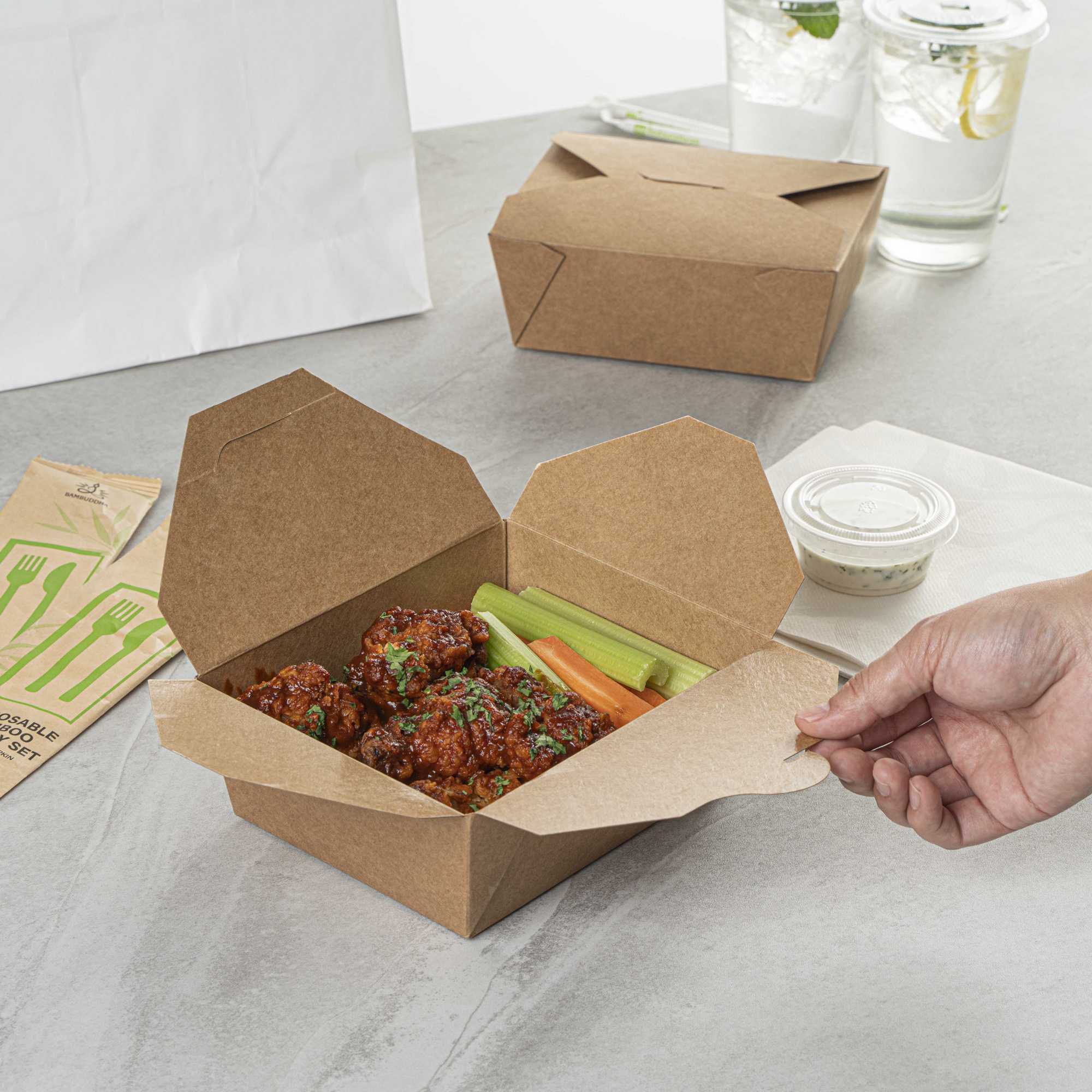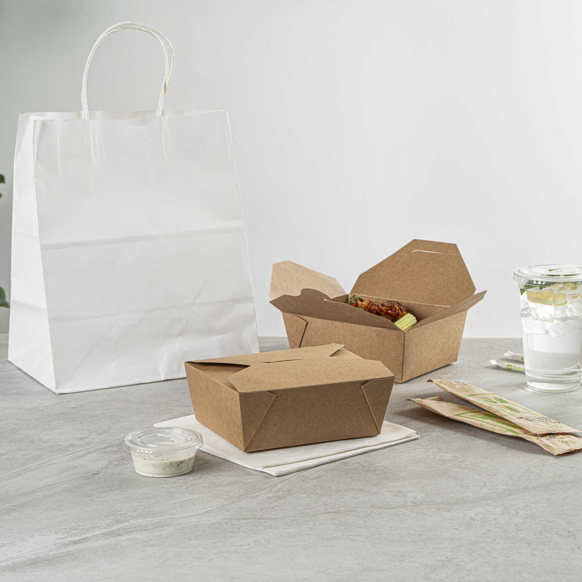 - Tab-lock closure ensures mess-free takeout and delivery