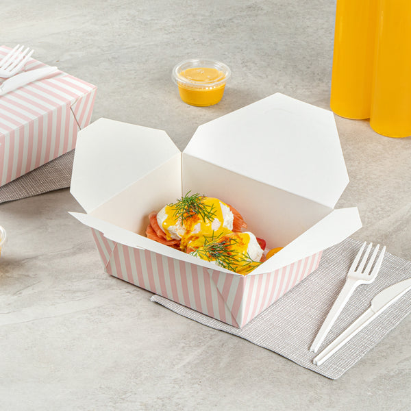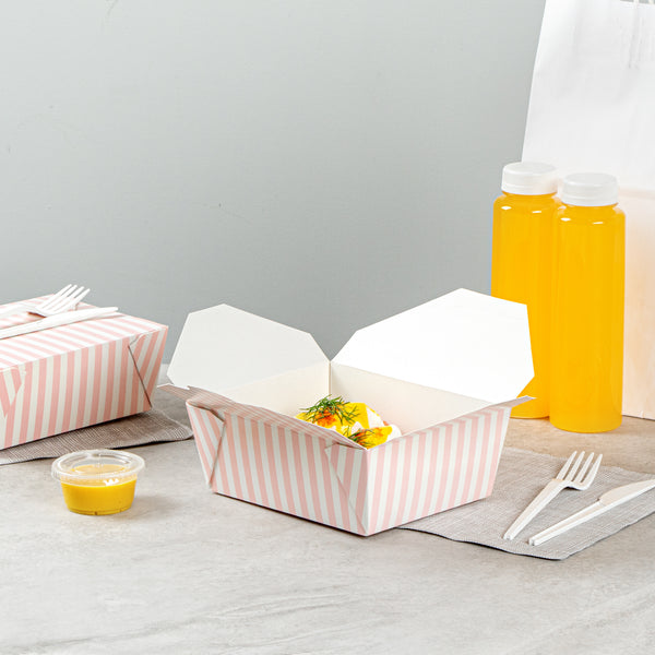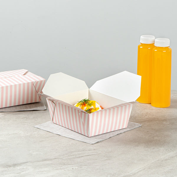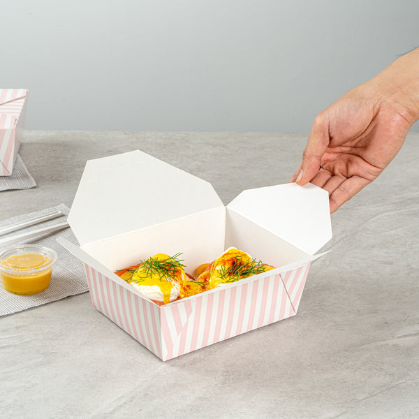 45 OZ PINK AND WHITE STRIPE PAPER #8 BIO BOX TAKE OUT CONTAINER