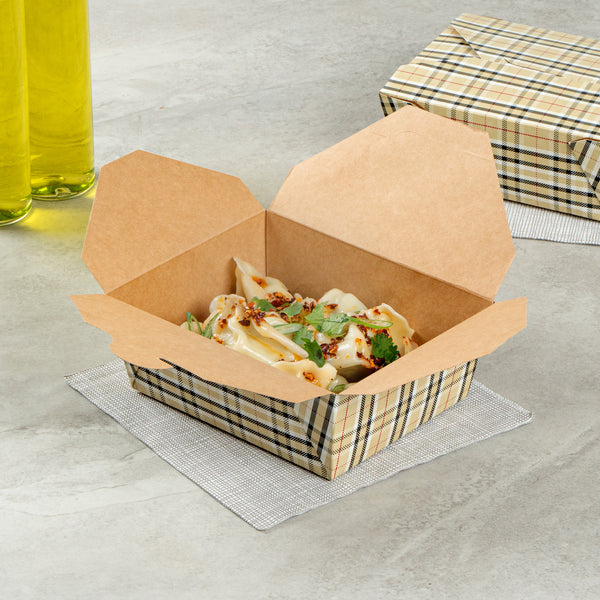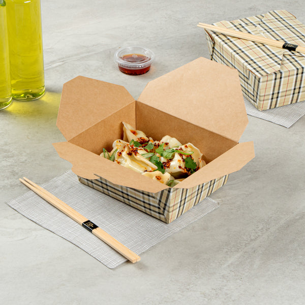 45 OZ RECTANGLE PLAID PAPER #8 BIO BOX TAKE OUT CONTAINER