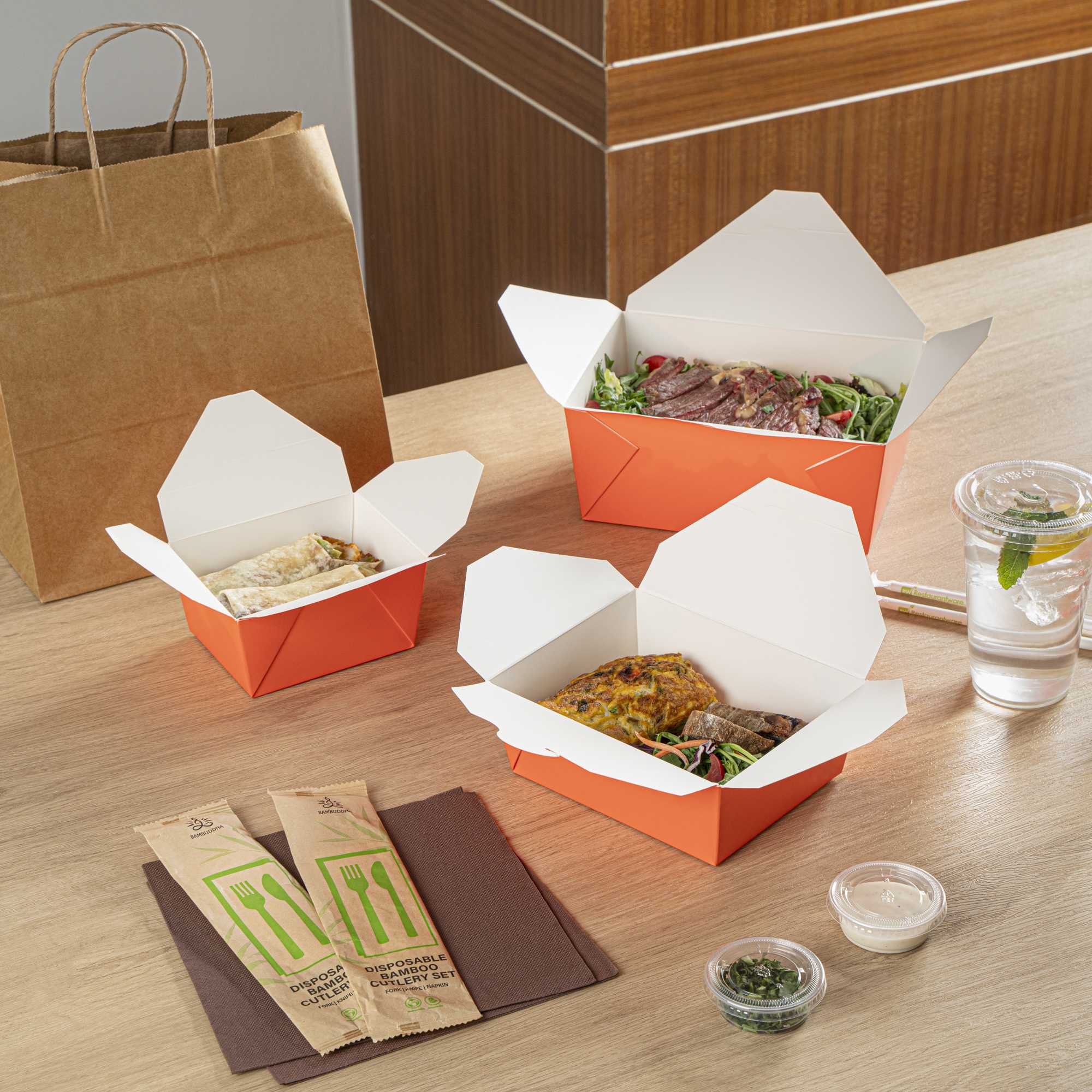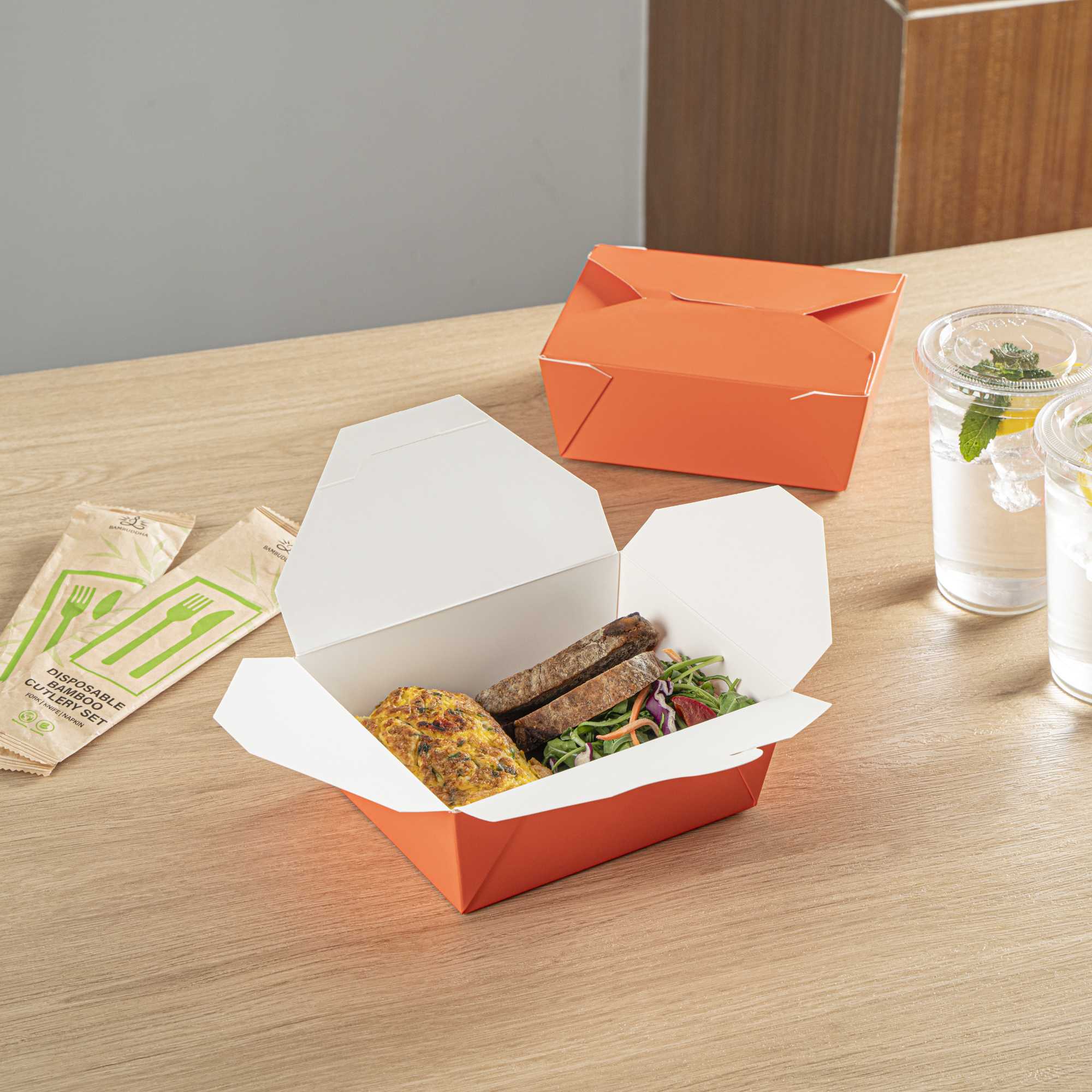 45 OZ RECTANGLE TANGERINE ORANGE PAPER #8 BIO BOX TAKE OUT CONTAINER