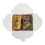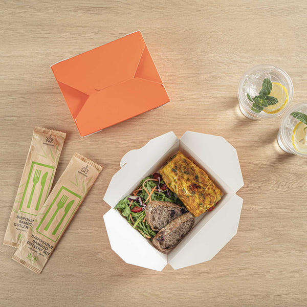 Our food containers are made from recyclable paper to easily dispose of boxes in a nature-friendly way. Don’t worry about washing dirty containers!