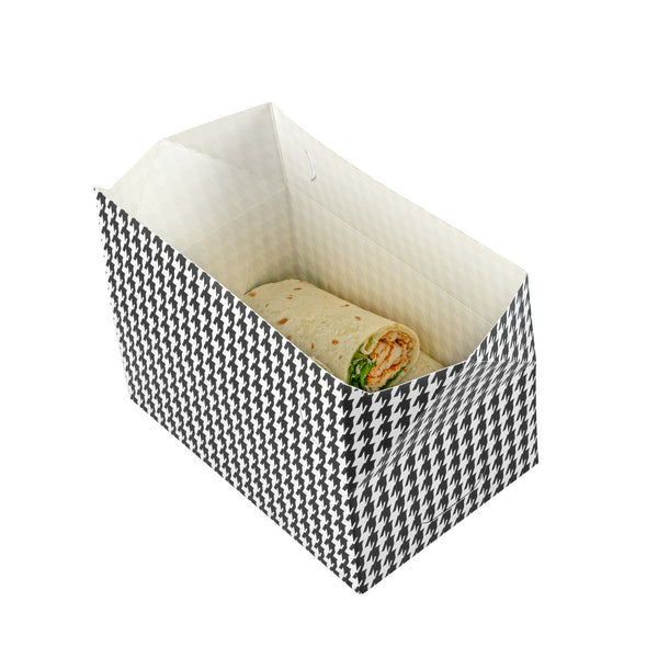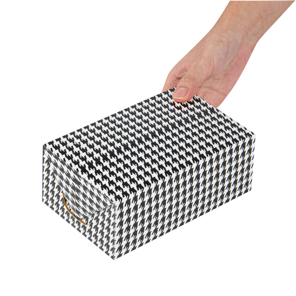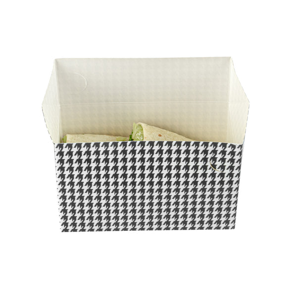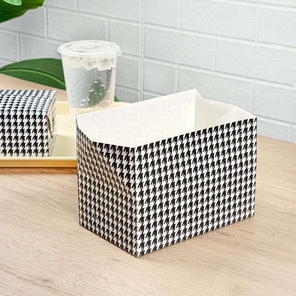 47 OZ BLACK HOUNDSTOOTH PAPER LUNCH / CHICKEN BOX - WITH FAST TOP