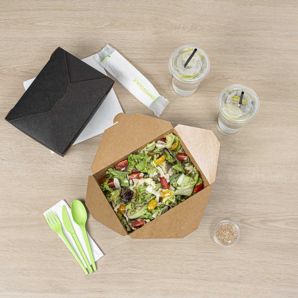 No matter the size of your dish, our disposable food boxes are available in different capacities to accommodate any meal. Choose from our soup, noodle, salad, or rectangle containers to easily pack and take food anywhere.