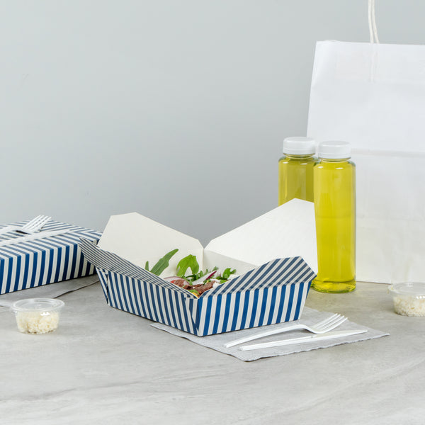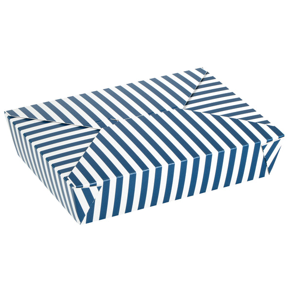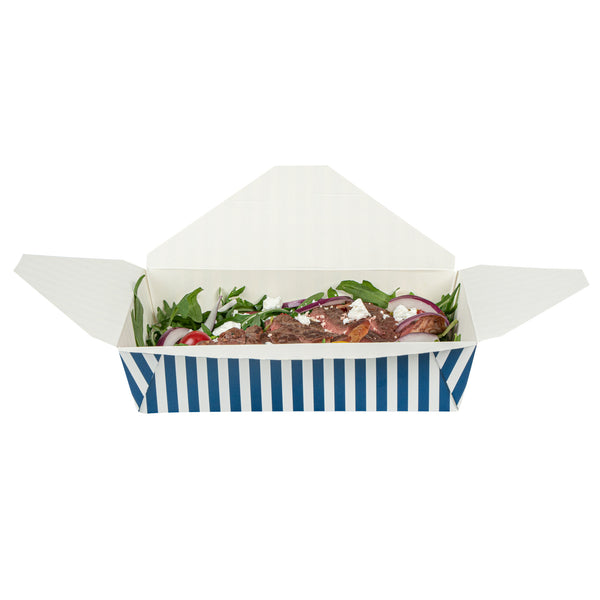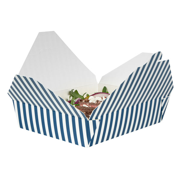 49 OZ BLUE AND WHITE STRIPE PAPER #2 BIO BOX TAKE OUT CONTAINER