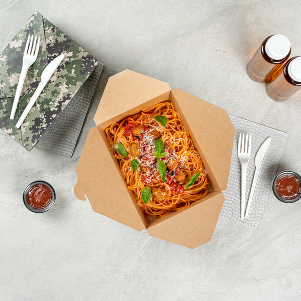 Providing an unmatched level of ease and portability, these bio boxes ensure a secure lock with their built-in tab lock, making for durable take out boxes. Their uniquely foldable design allows for easy storage, on-the-go functionality, and a minimalistic approach.