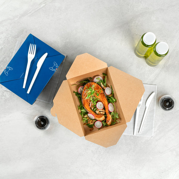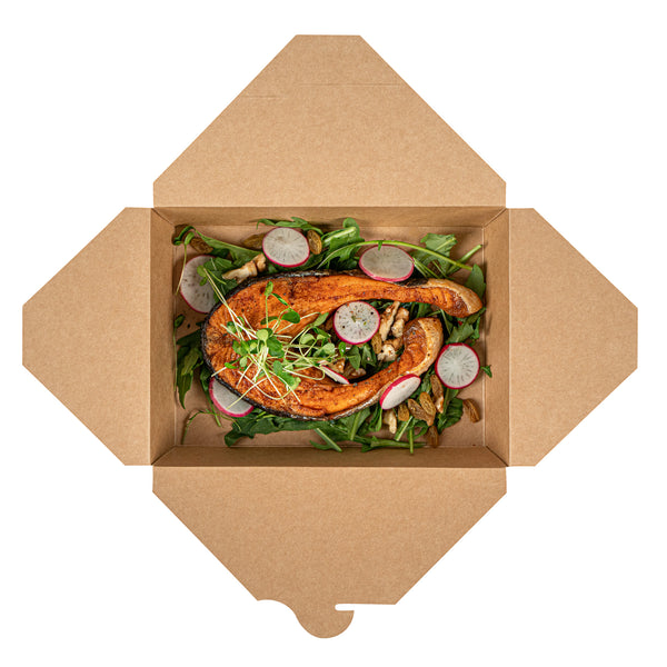 Providing an unmatched level of ease and portability, these bio boxes ensure a secure lock with their built-in tab lock, making for durable take out boxes. Their uniquely foldable design allows for easy storage, on-the-go functionality, and a minimalistic approach.