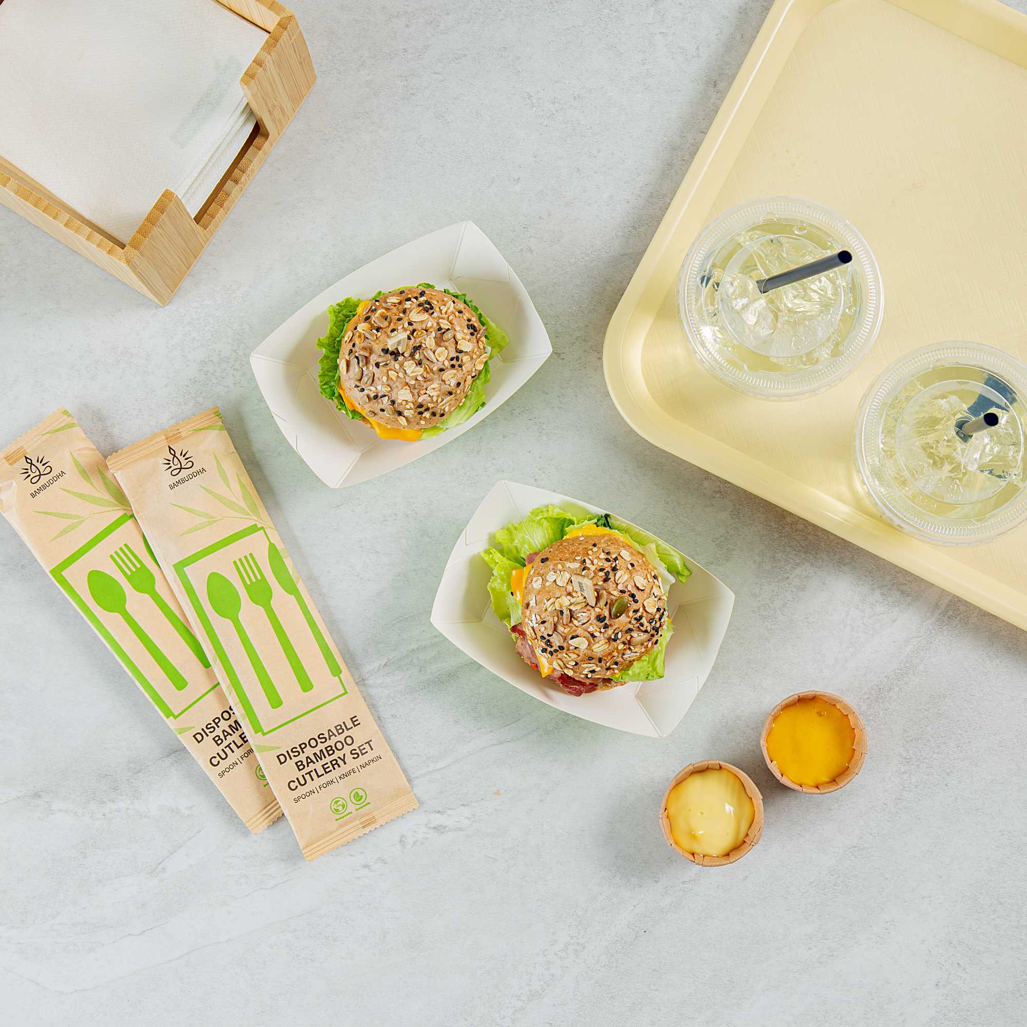 These paper burger trays have a tough PE lining to avoid oils or grease from seeping through. Great for serving french fries or crispy chicken wings!
