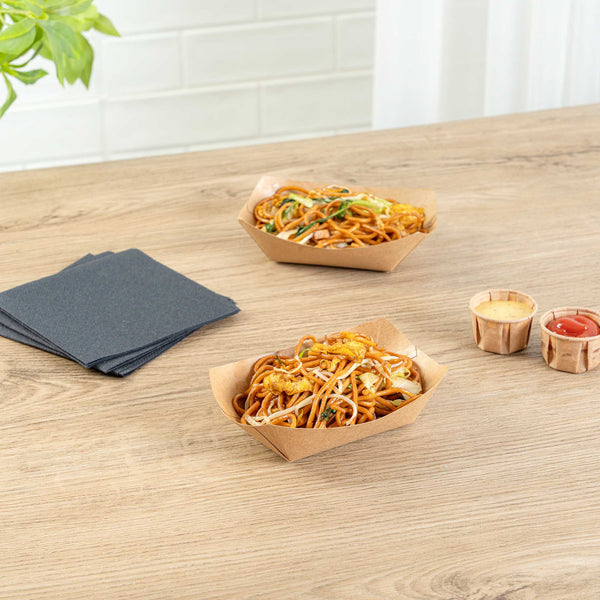 Made from premium paper, these disposable paper food boats are sturdy and reliable to support hefty and saucy dishes. Don't worry about your serving supplies breaking!
