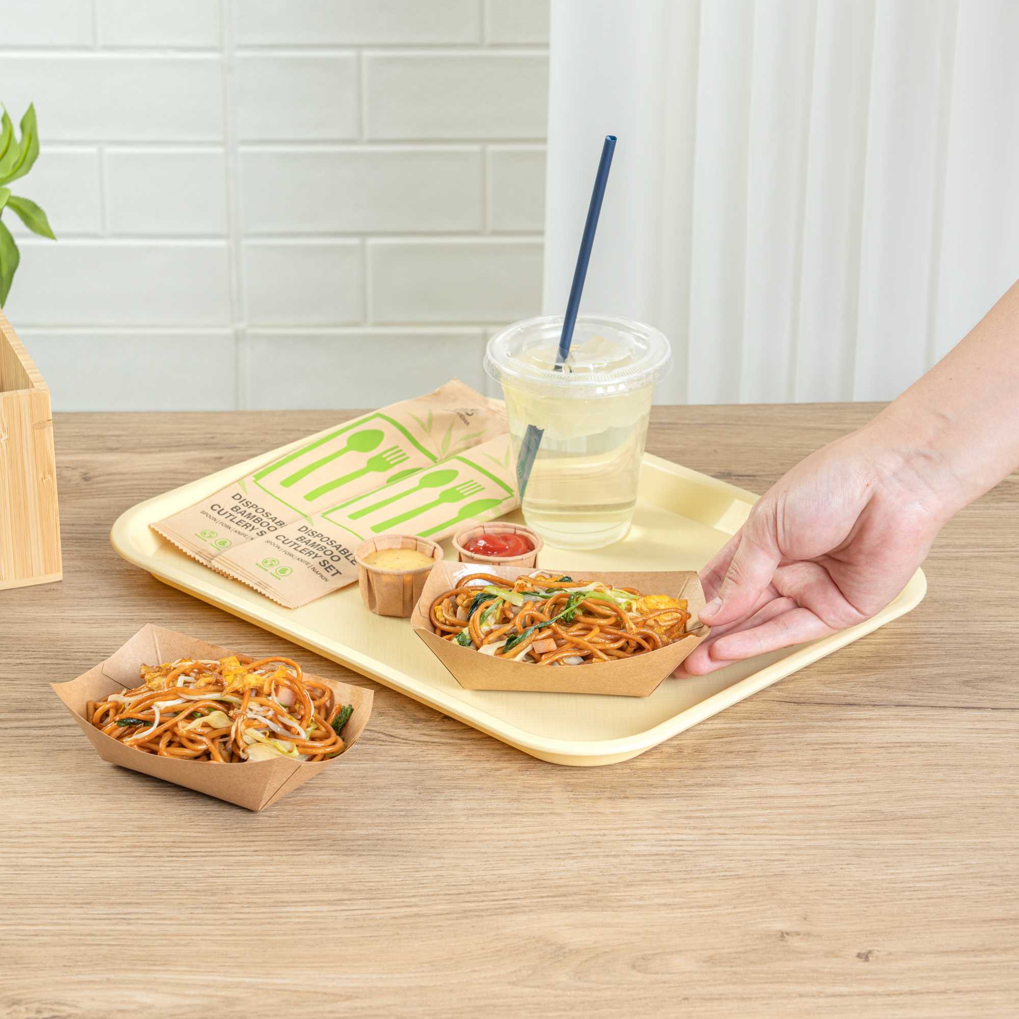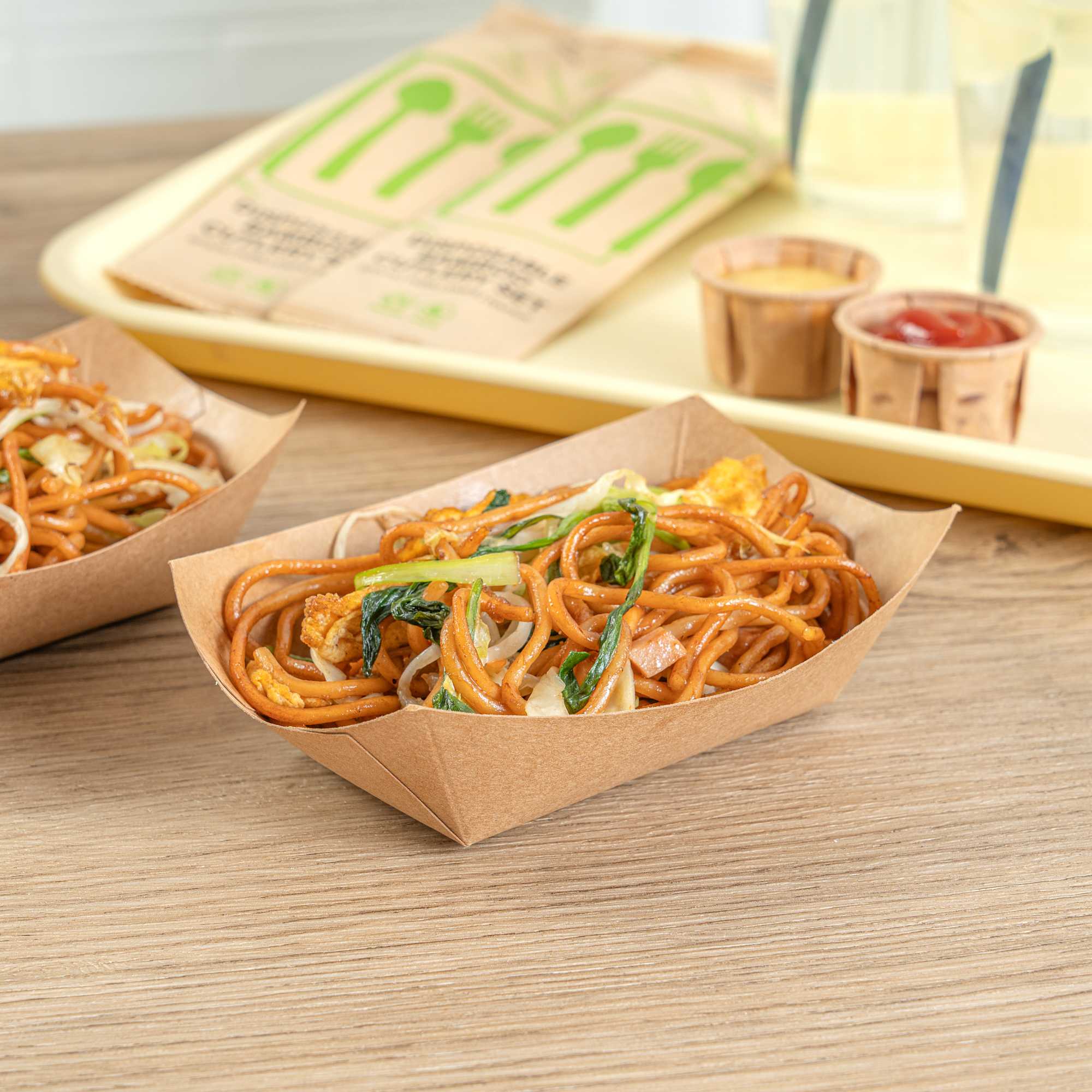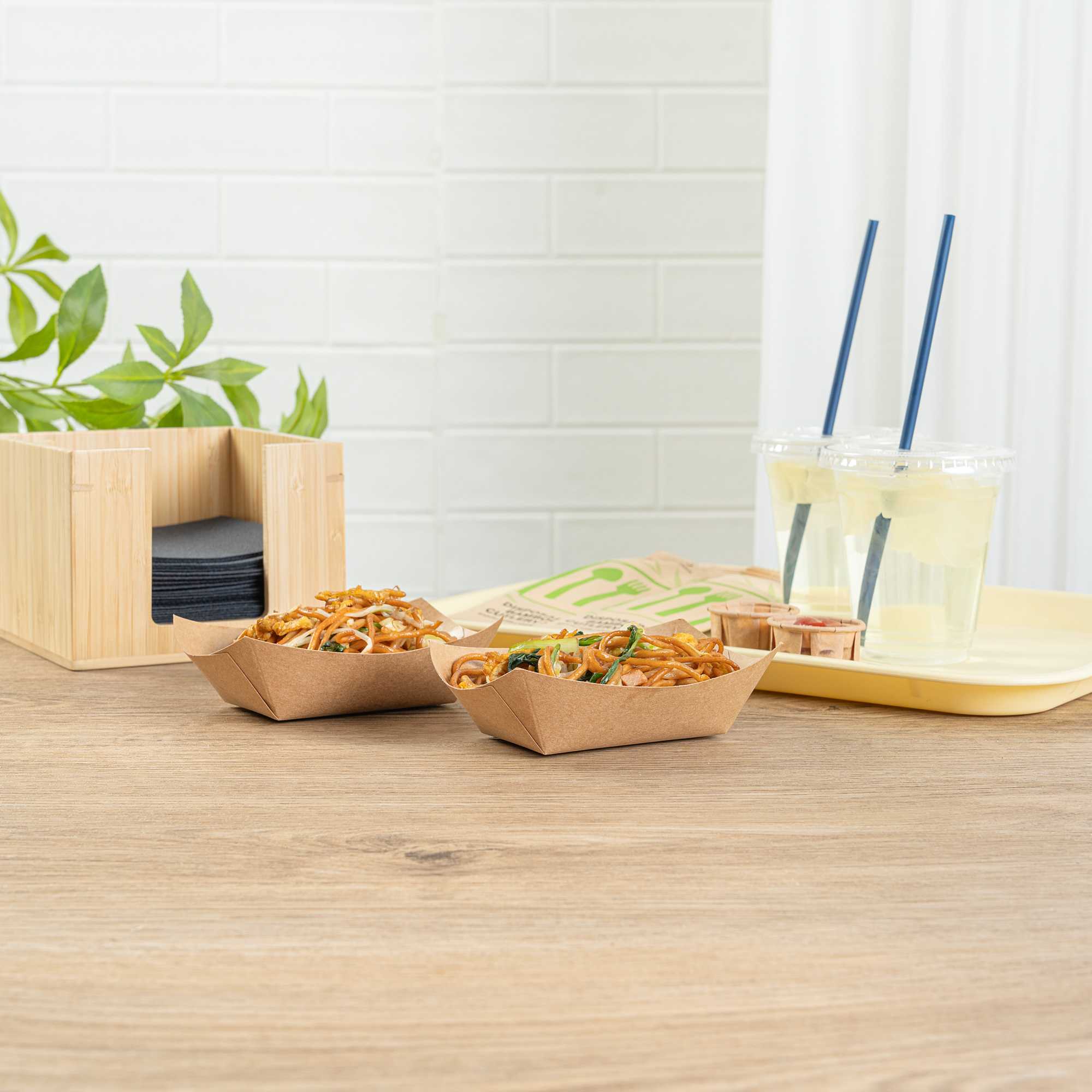 For a simple cleaning process for establishments and guests, these paper food boats are sustainably disposable. Reduce your impact on the environment!