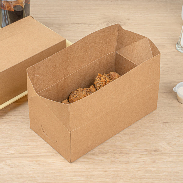 Ensure a spill-free dining experience with our Bio Tek Spill-Resistant Takeout Box. This kraft paper box features a fast top closure that guarantees a secure seal, making it an ideal choice for restaurants and cafes seeking reliable food transportation solutions. Equipped with a greaseproof lining, this food packaging box prevents oil and sauce leaks, preserving the freshness of meals and maintaining customer satisfaction. Measuring 8.9 inches in length, this eco-friendly takeout box boasts a generous 71-ounce capacity to accommodate a variety of meal sizes, perfect for catering services and food trucks. Crafted from recyclable paper, it supports sustainability initiatives by minimizing waste and promoting eco-friendliness. Enhance your foodservice operations by choosing an efficient and sustainable packaging solution. Each order includes 100 Bio Tek Spill-Resistant Takeout Box.
