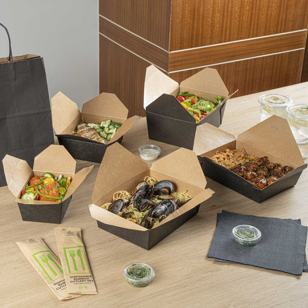 No matter the size of your dish, our disposable food boxes are available in different capacities to accommodate any meal. Choose from our soup, noodle, salad, or rectangle containers to easily pack and take food anywhere.