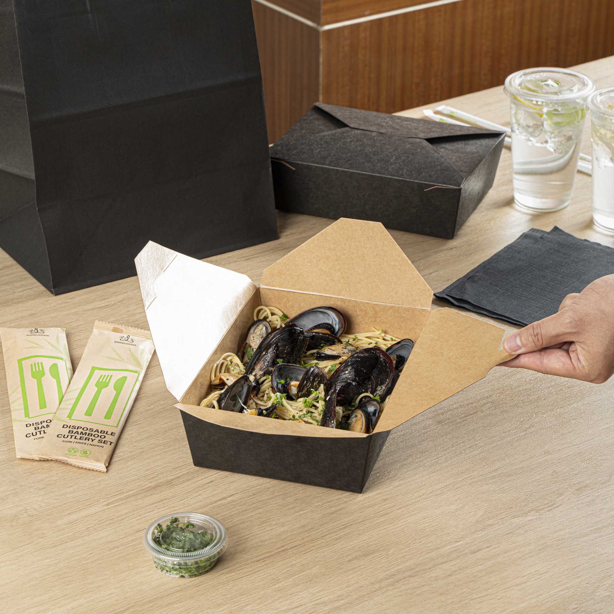 71 OZ RECTANGLE BLACK PAPER #3 BIO BOX TAKE OUT CONTAINER