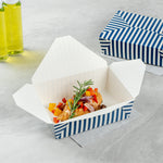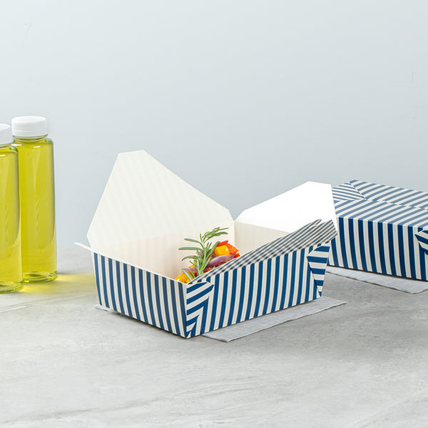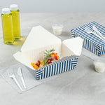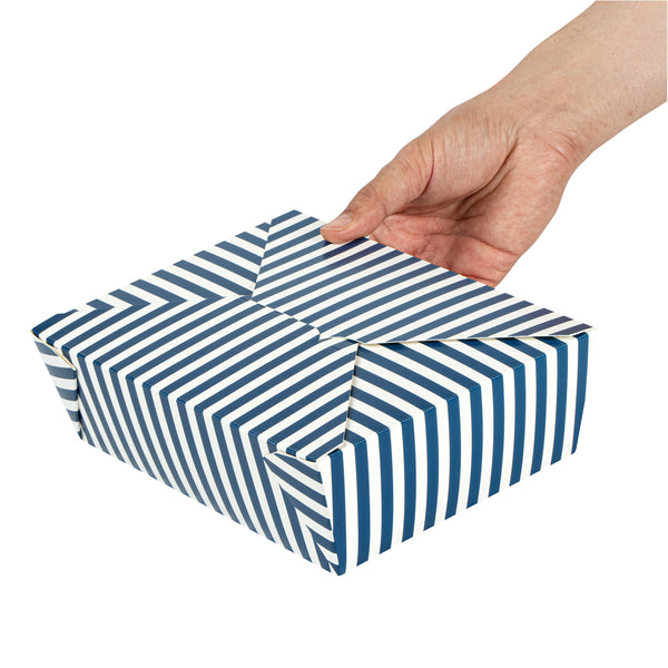 71 OZ BLUE AND WHITE STRIPE PAPER #3 BIO BOX TAKE OUT CONTAINER