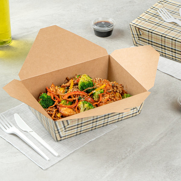71 OZ PLAID PAPER #3 BIO BOX TAKE OUT CONTAINER