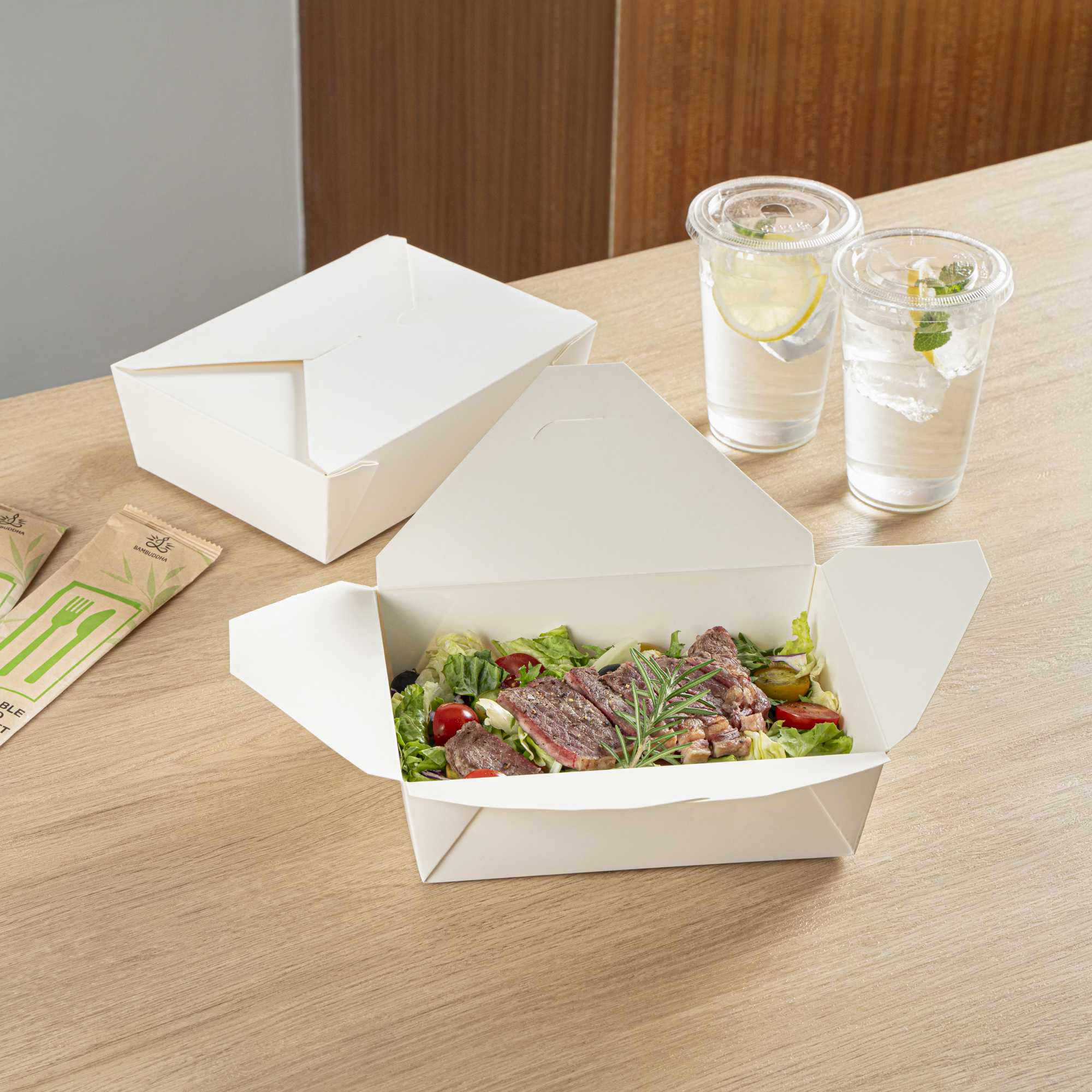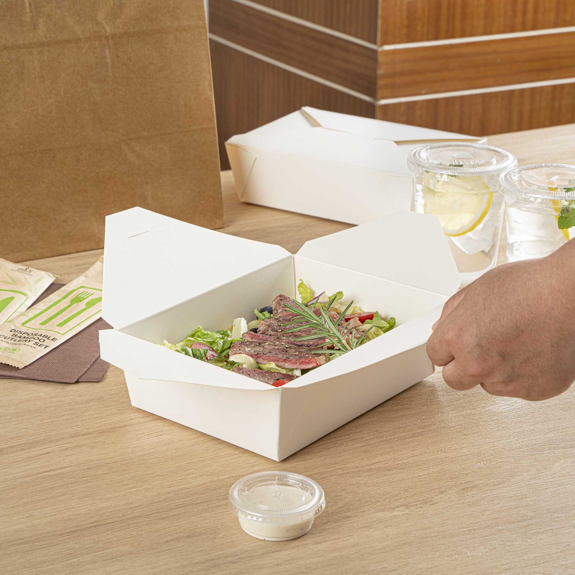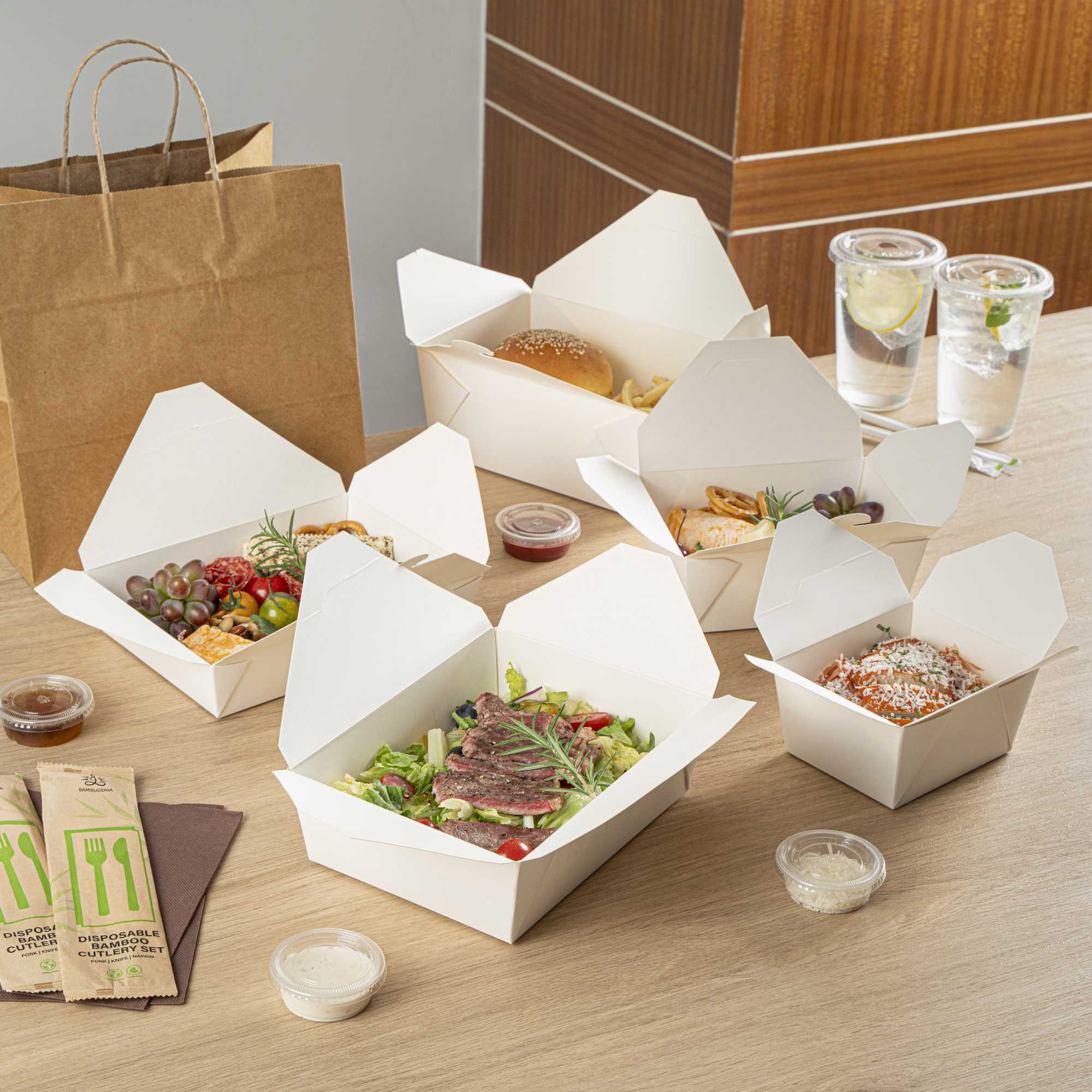 No matter the size of your dish, our disposable food boxes are available in different capacities to accommodate any meal. Choose from our soup, noodle, salad, or rectangle containers to easily pack and take food anywhere.