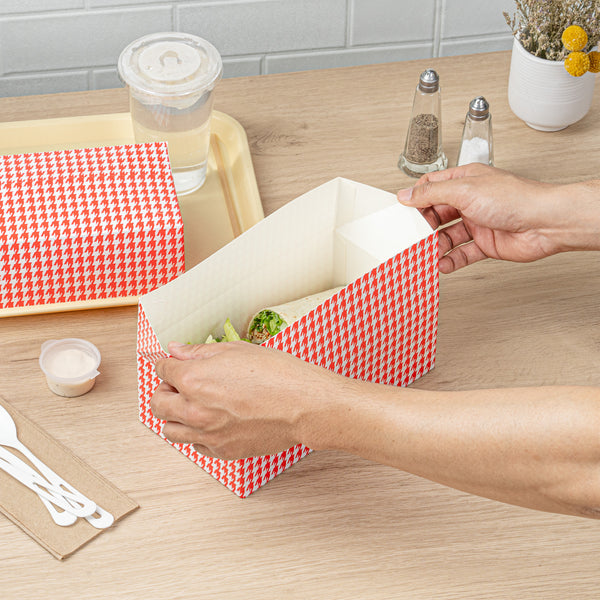 71 OZ RED HOUNDSTOOTH PAPER LUNCH / CHICKEN BOX - WITH FAST TOP