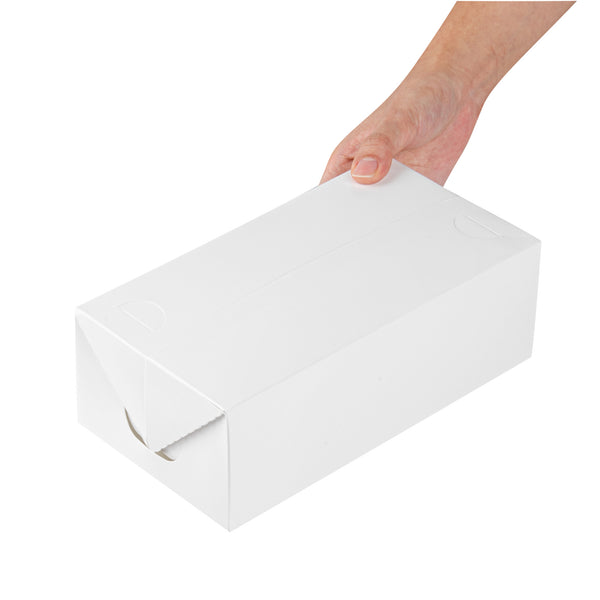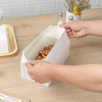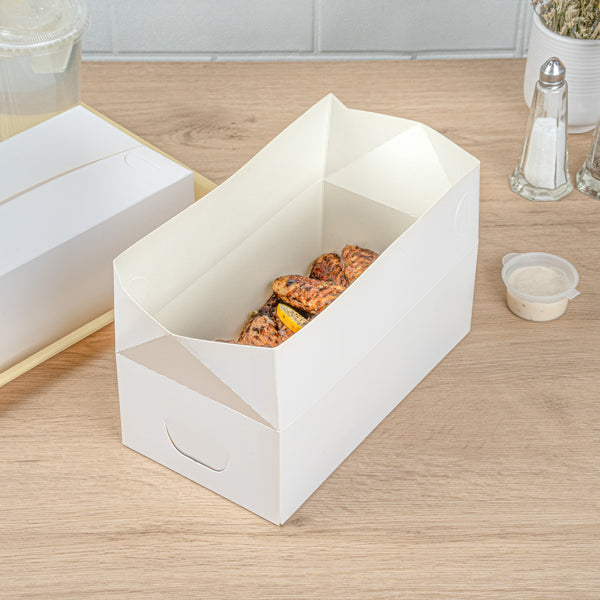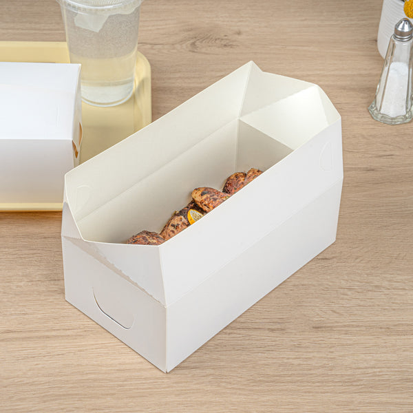 Ensure seamless meal deliveries with spill-proof packaging. The Bio Tek Spill-Resistant Paper Takeout Box offers a fast top closure that guarantees a secure seal, preventing leaks during transport and making it an ideal paper takeout box for busy restaurants and catering services. With a generous 71-ounce capacity, it accommodates large portions, perfect for food trucks and eateries serving hearty meals. Its greaseproof lining keeps dishes fresh by preventing oil seepage, enhancing the quality of your takeout offerings. Crafted from recyclable paper, this disposable lunch box supports eco-friendly waste management, aligning with sustainable practices in the foodservice industry. Measuring 8.75 inches by 5 inches by 3 inches, its white paper construction provides a clean and professional presentation, making a great impression on customers. Elevate your restaurant takeout container solutions with this efficient and stylish option. Each order includes 400 Bio Tek Spill-Resistant Paper Takeout Boxes.