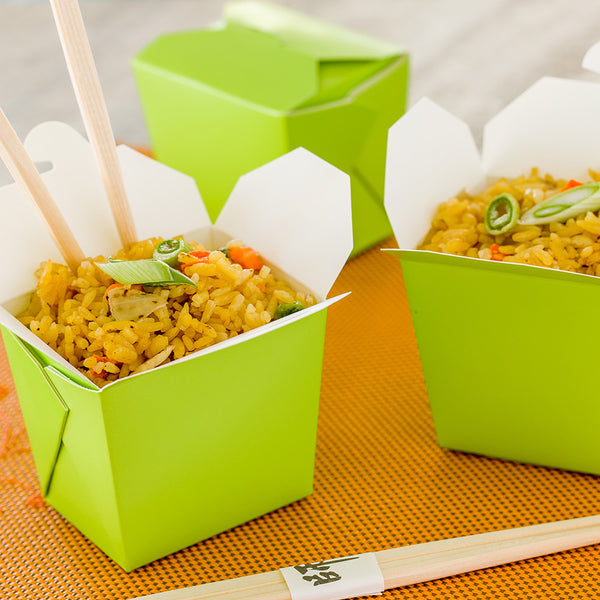 These carry out containers are available in a variety of colors and prints to match with your restaurant’s color scheme or party theme. Add a pop of color to your food packaging orders!