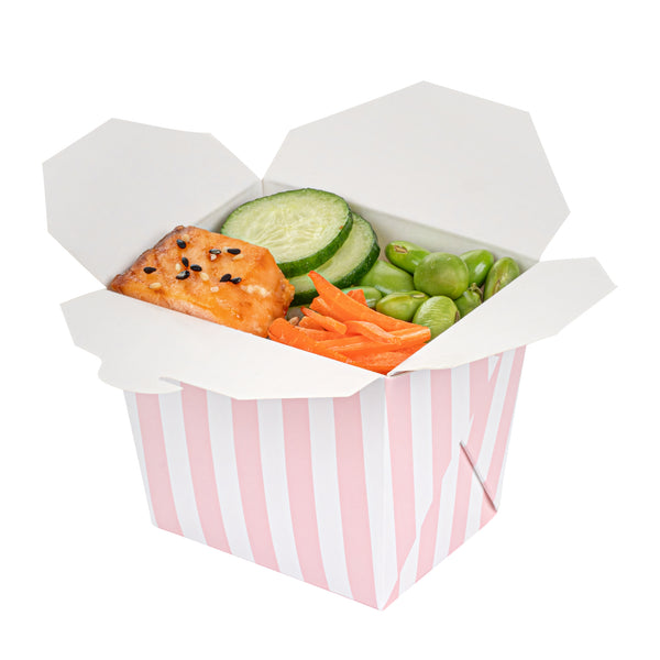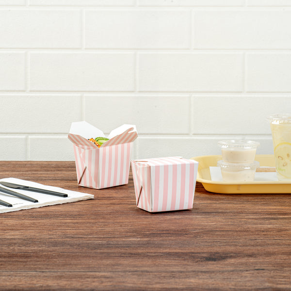 8 OZ SQUARE PINK AND WHITE STRIPE PAPER NOODLE TAKE OUT CONTAINER