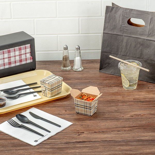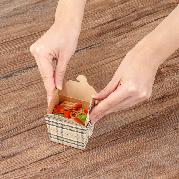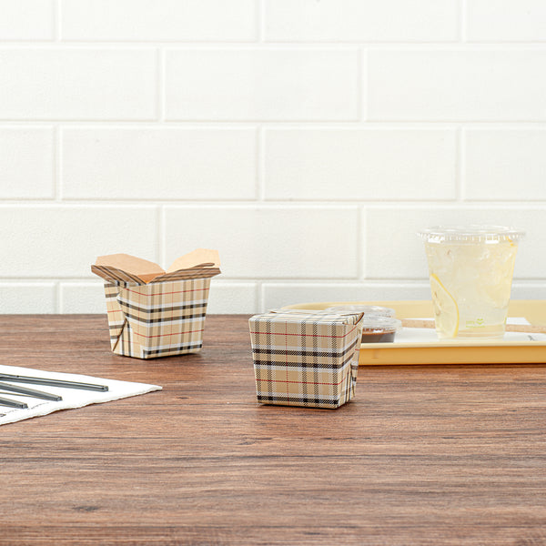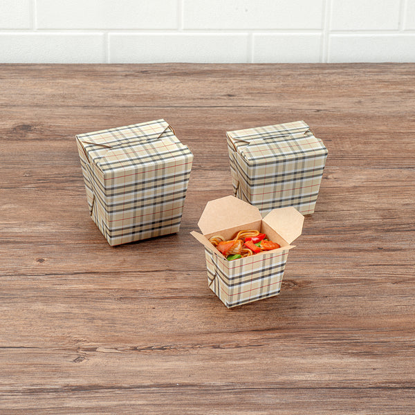 8 OZ SQUARE PLAID PAPER NOODLE TAKE OUT CONTAINER