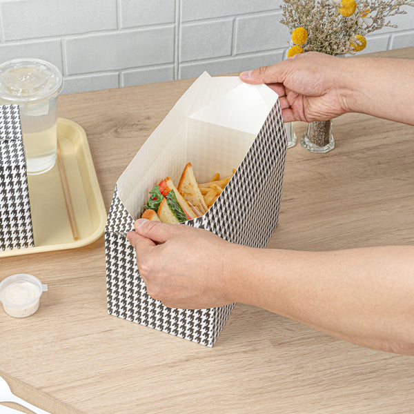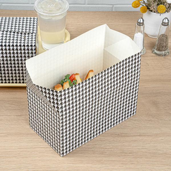 80 OZ BLACK HOUNDSTOOTH PAPER LUNCH / CHICKEN BOX - WITH FAST TOP