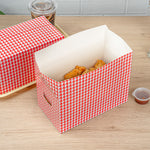 Streamline your food packaging with secure and efficient solutions. The Bio Tek Spill-Resistant Take Out Lunch Box, with its fast top closure, ensures secure sealing to prevent leaks, making it the ideal take out lunch box for busy restaurants and cafes. With a substantial 80-ounce capacity, this spill-resistant food box accommodates generous portions, perfect for family-sized meals or bulk orders. Its greaseproof lining maintains the freshness of meals by preventing oil seepage, safeguarding food quality during transport. Constructed from recyclable paper, this catering food box not only reduces waste but also aligns with eco-friendly practices, appealing to environmentally conscious consumers. Measuring 9 inches in length, this stylish red houndstooth patterned box enhances brand presentation, making a memorable impression on customers. Elevate your food service efficiency and sustainability with this versatile packaging solution. Each order includes 400 Bio Tek Spill-Resistant Take Out Lunch Box.