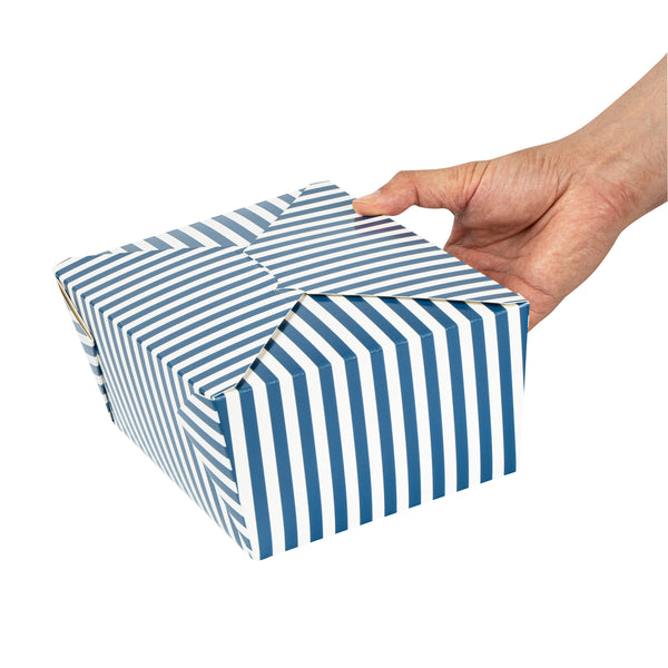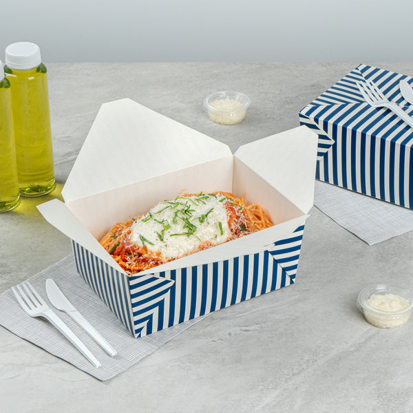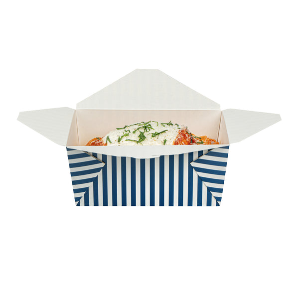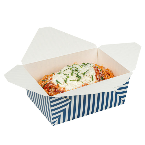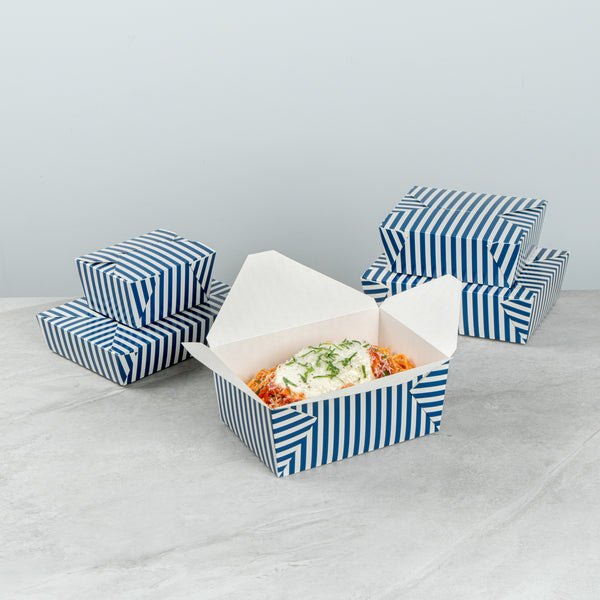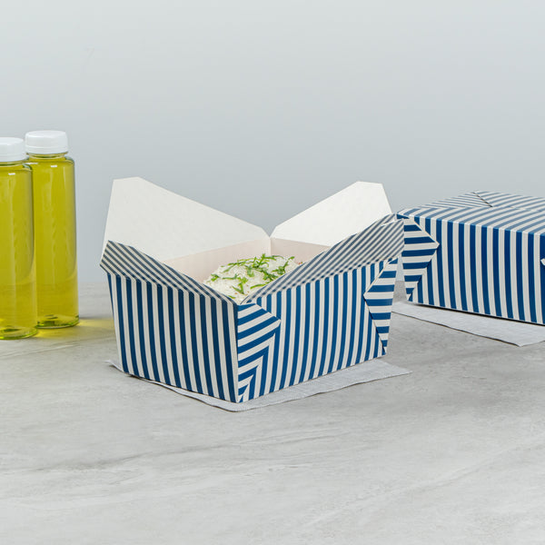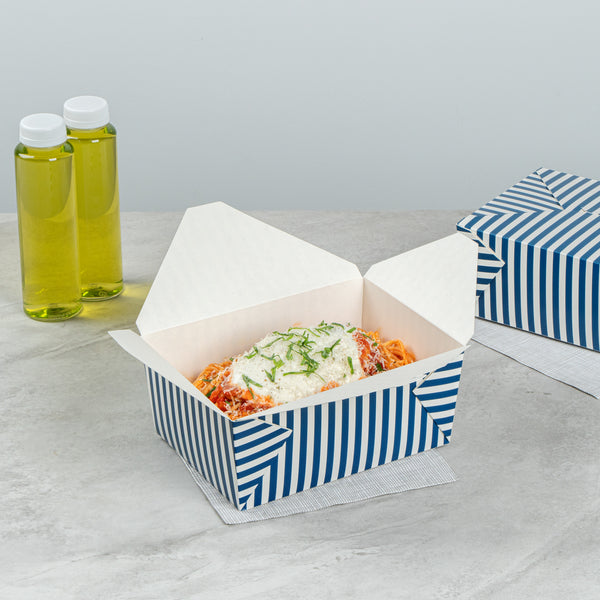 98 OZ BLUE AND WHITE STRIPE PAPER #4 BIO BOX TAKE OUT CONTAINER