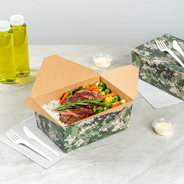 98 OZ CAMOUFLAGE PAPER #4 BIO BOX TAKE OUT CONTAINER