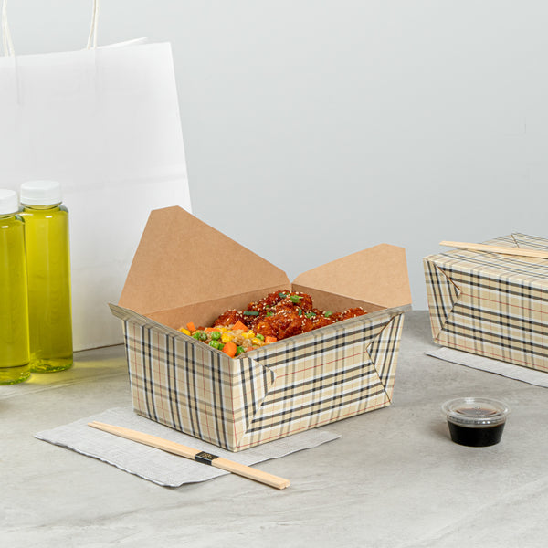 98 OZ PLAID PAPER #4 BIO BOX TAKE OUT CONTAINER