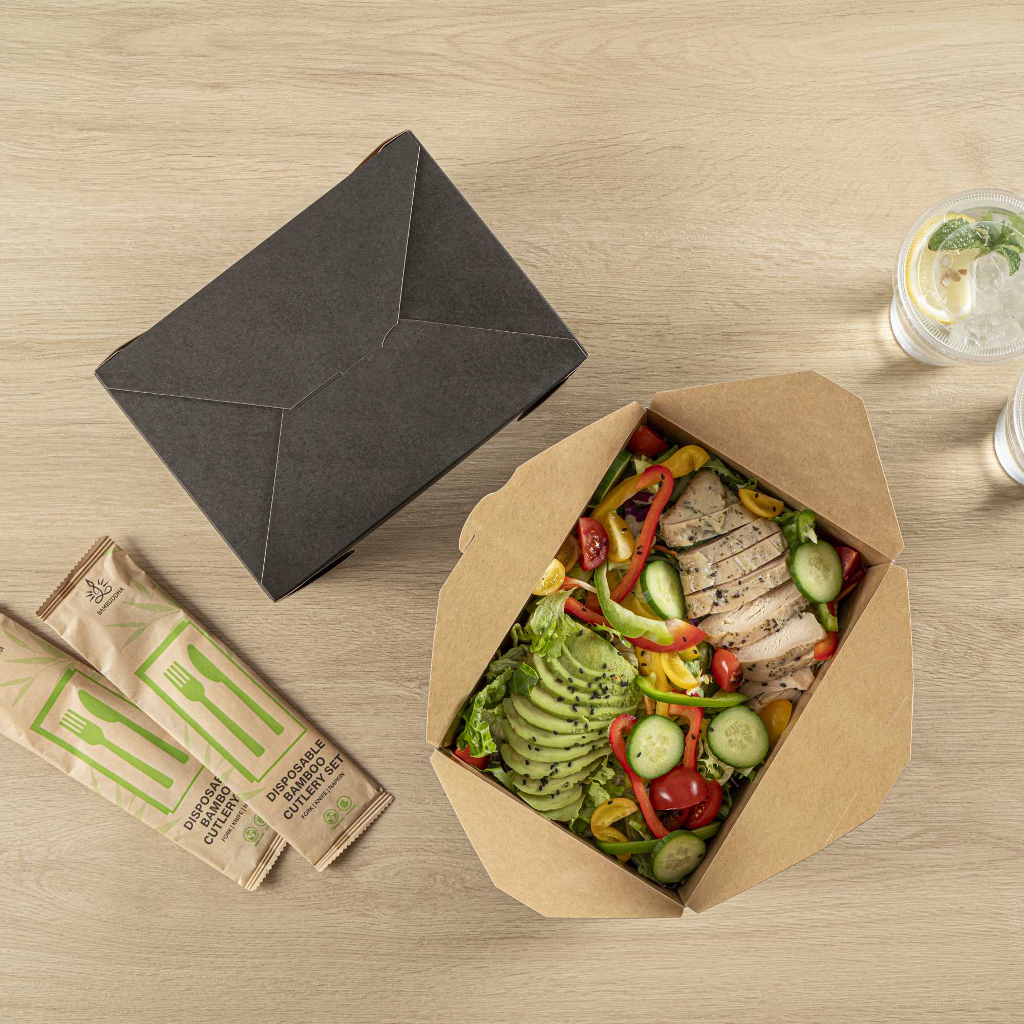 Our food containers are made from recyclable paper to easily dispose of boxes in a nature-friendly way. Don’t worry about washing dirty containers!