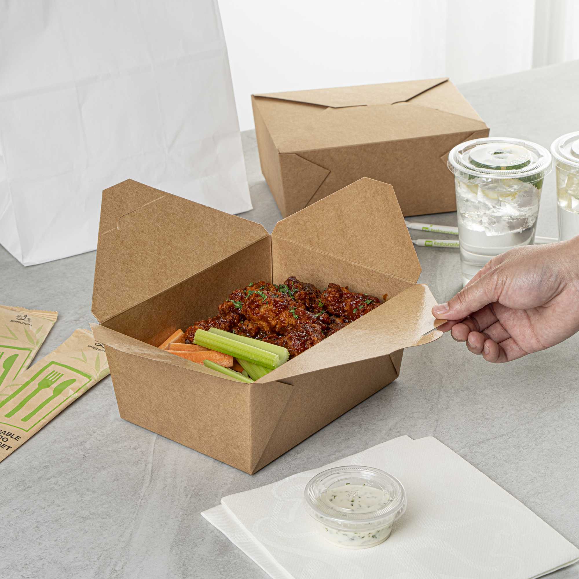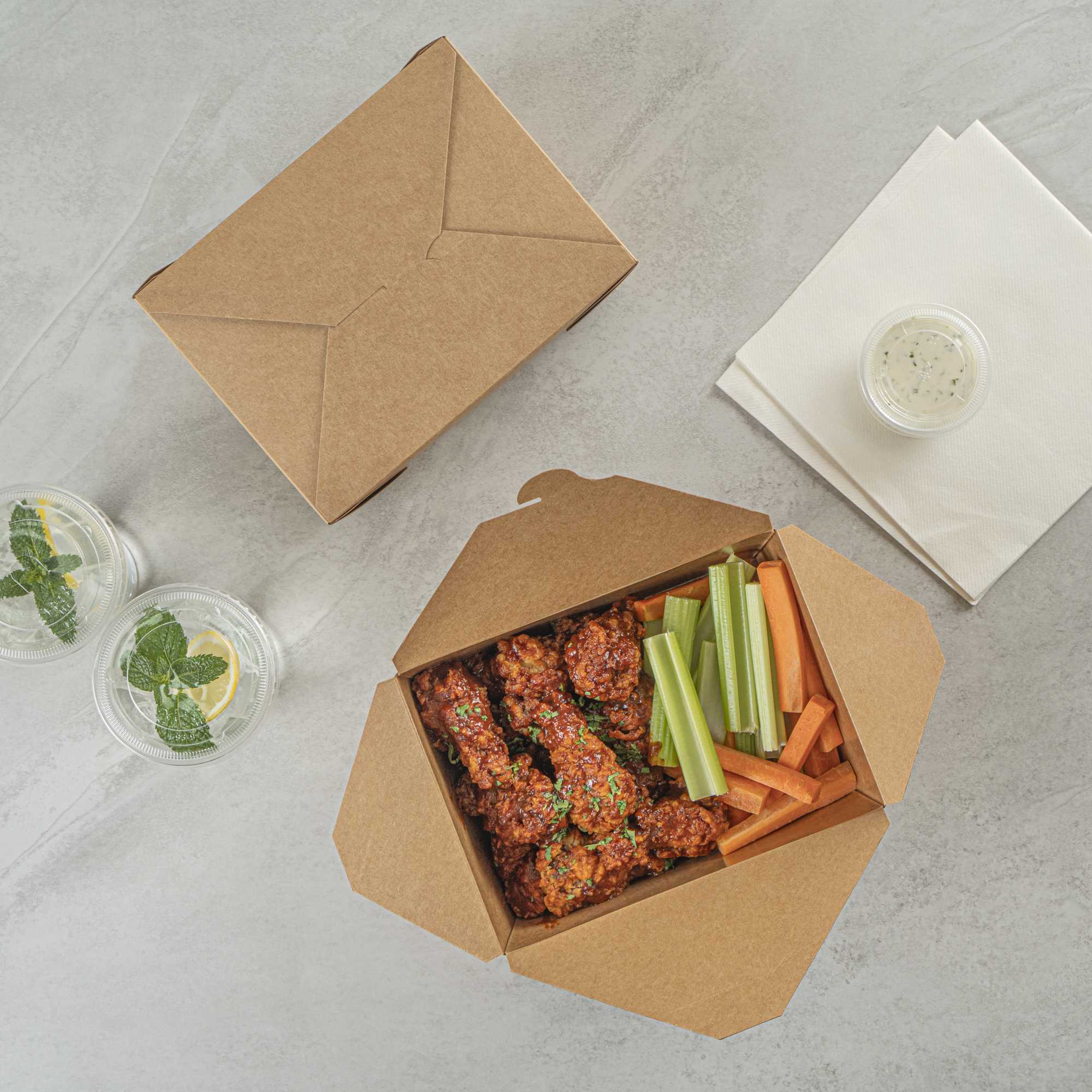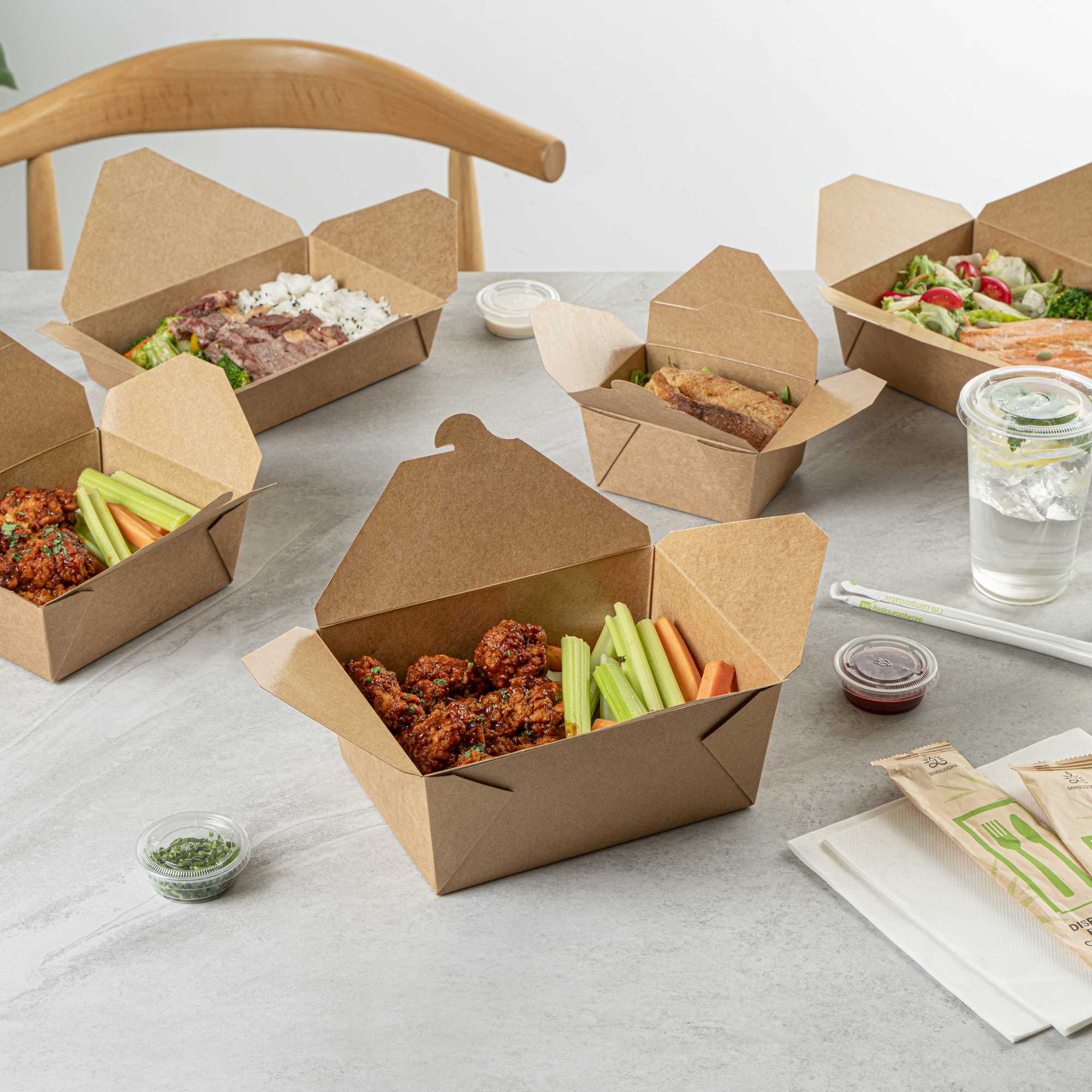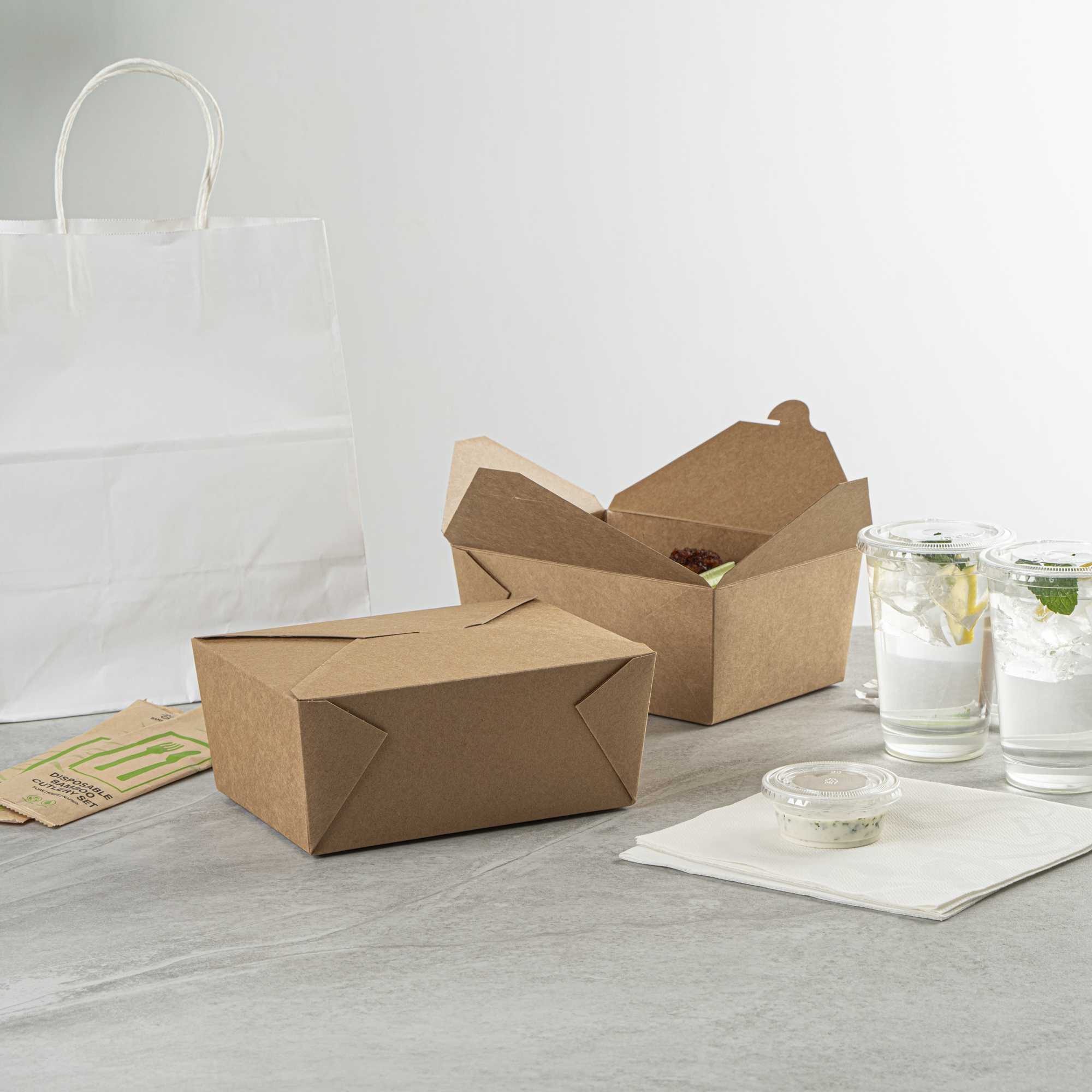 No matter the size of your dish, our disposable food boxes are available in different capacities to accommodate any meal. Choose from our soup, noodle, salad, or rectangle containers to easily pack and take food anywhere.