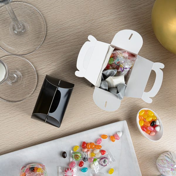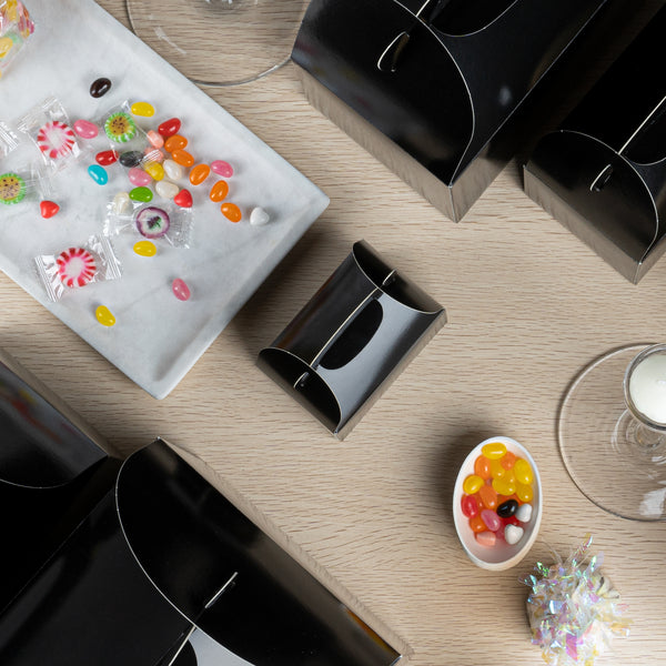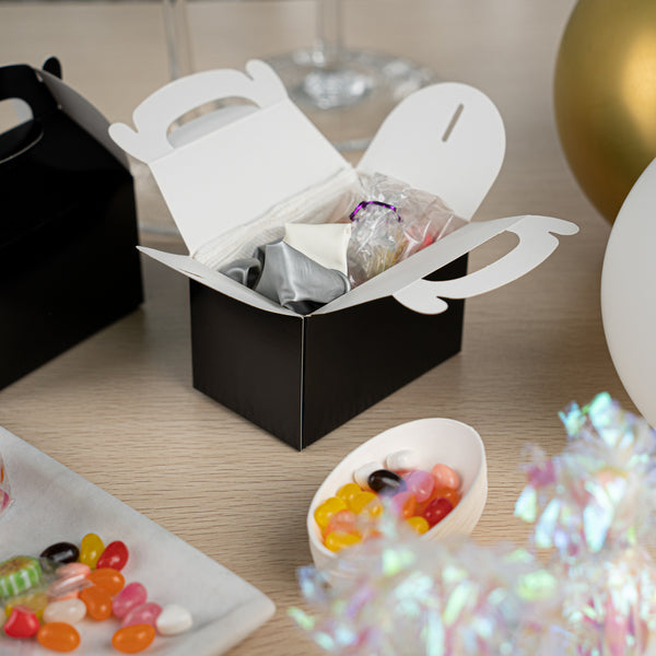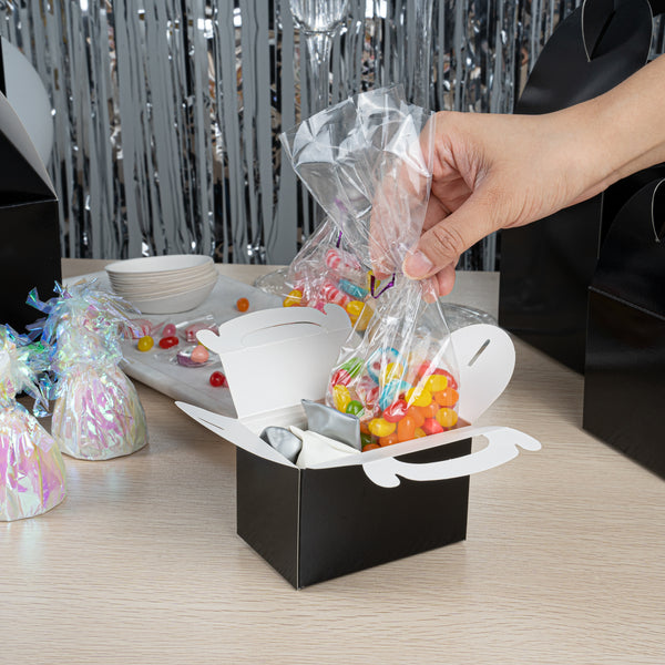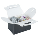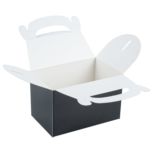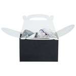 Enhance your takeout experience with versatile carrying solutions. Bio Tek Greaseproof Gable Gift Boxes feature a greaseproof lining that prevents oils from leaking onto surfaces, ensuring clean and professional presentation every time. These gable gift boxes come equipped with a built-in handle, making it easy to carry orders, whether you're packing delectable treats or savory meals. Their freezer-safe design allows you to store desserts effortlessly, maintaining their freshness and quality. Crafted from durable black paper, these boxes are both recyclable and suitable for cold or hot foods, making them an ideal option for any occasion. Perfect for use as wedding favor boxes, they provide a charming and functional way to present your culinary creations. Choose these kraft paper favor boxes to enhance your service efficiency and style. Each order includes 25 Bio Tek Greaseproof Gable Gift Boxes.