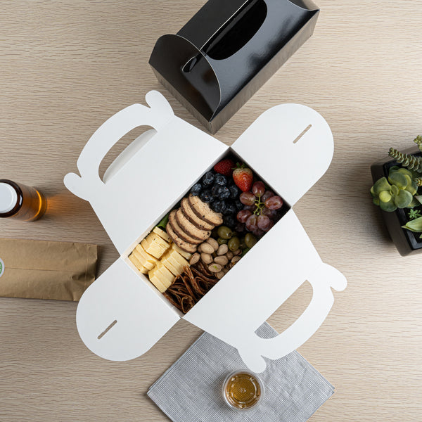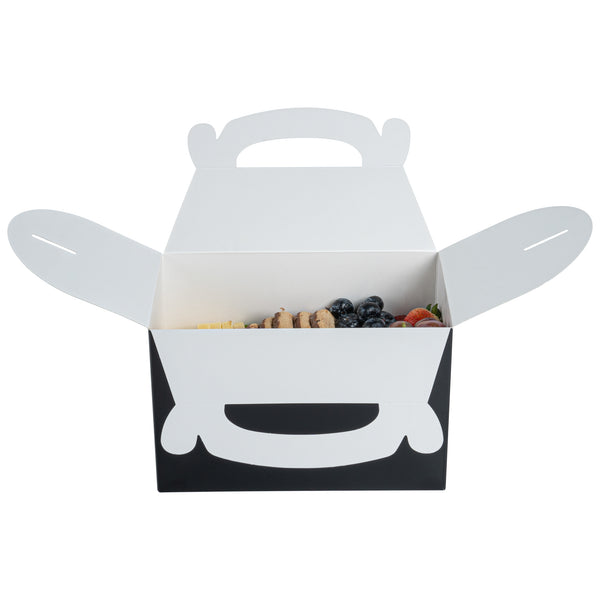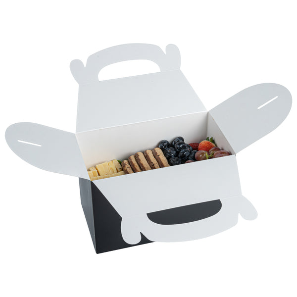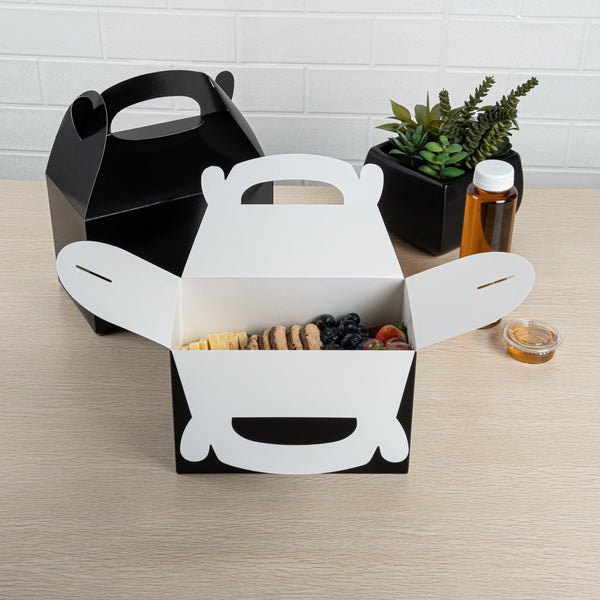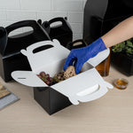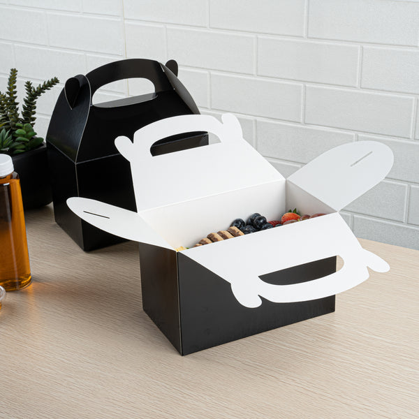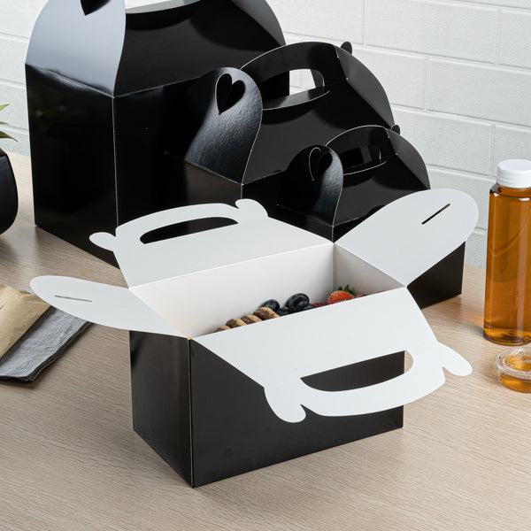 Ensure pristine presentation with versatile packaging solutions. Bio Tek Black Paper Gable Gift Boxes, crafted from sturdy paper, come equipped with a greaseproof lining that keeps oils from seeping through, making them ideal gable gift boxes for both hot and cold food applications. The built-in handle allows for comfortable carrying of orders, streamlining operations while adding a touch of elegance to your foodservice deliveries. With a freezer-safe design, these cardboard gift boxes enable you to store treats for future enjoyment, enhancing storage flexibility. Measuring 8.5 inches in length, 4.75 inches in width, and 5.5 inches in height, these paper gift boxes offer ample space for a variety of food items, ensuring they remain intact and visually appealing. Invest in reliable packaging that not only protects your products but also elevates your brand's presentation. Each order includes 25 Bio Tek Black Paper Gable Gift Boxes.