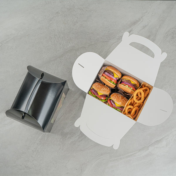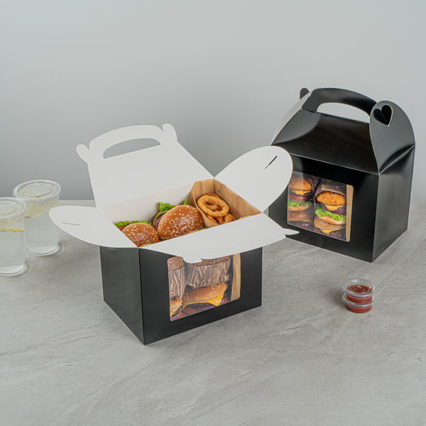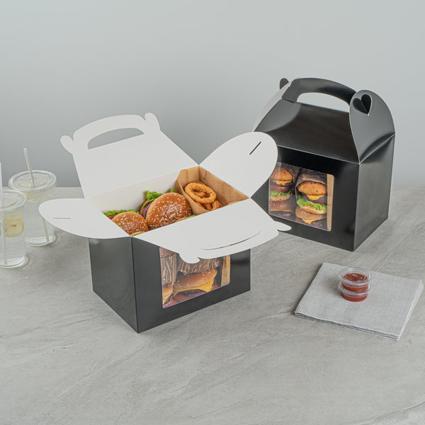 BLACK PAPER GABLE BOX / TAKE OUT CONTAINER - GREASEPROOF, WITH WINDOW