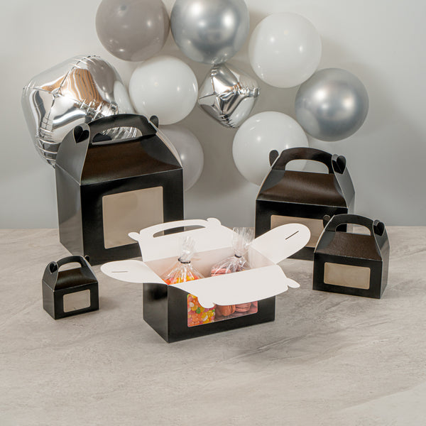 BLACK PAPER GABLE BOX / TAKE OUT CONTAINER - GREASEPROOF, WITH WINDOW