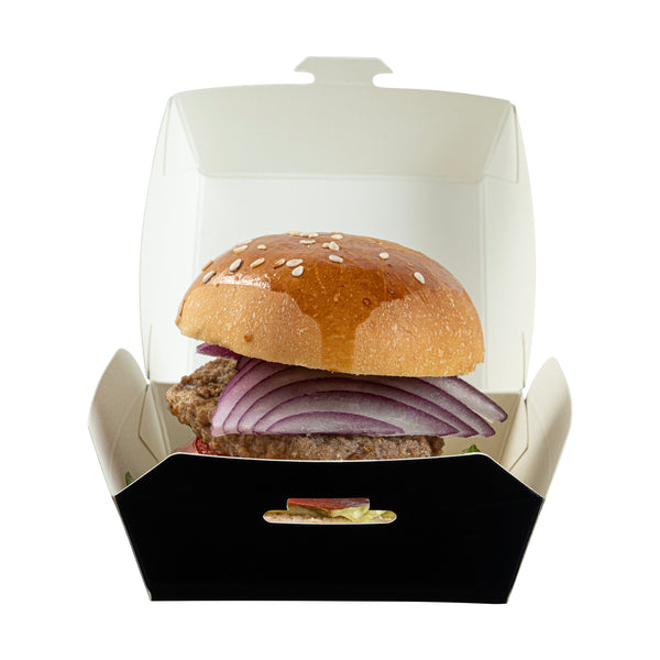 Enjoy the strength and durability of these burger boxes, crafted from premium paper for your satisfaction. They're sure to withstand every journey, keeping your food as intended.