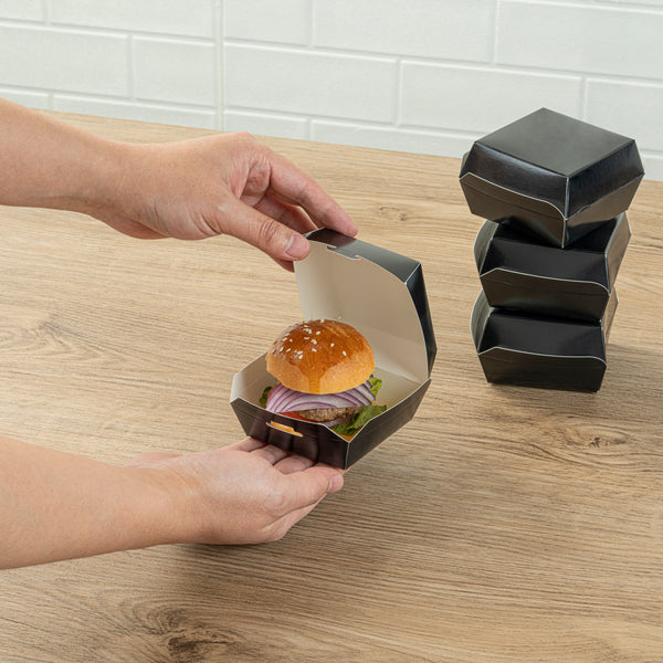 Find the perfect fit for your burgers with these slider packaging boxes available in various sizes. Perfectly accommodating for mini sliders to jumbo gourmet creations.