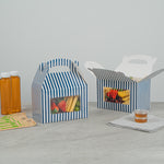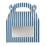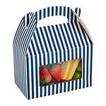 BLUE AND WHITE STRIPE PAPER GABLE BOX/TAKE OUT CONTAINER - WITH WINDOW