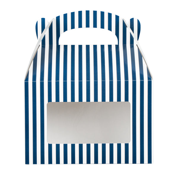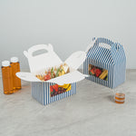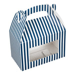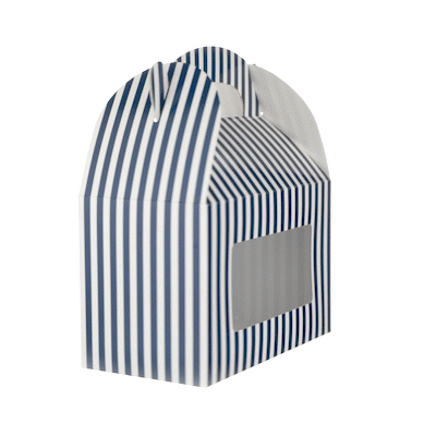 BLUE AND WHITE STRIPE PAPER GABLE BOX/TAKE OUT CONTAINER - WITH WINDOW